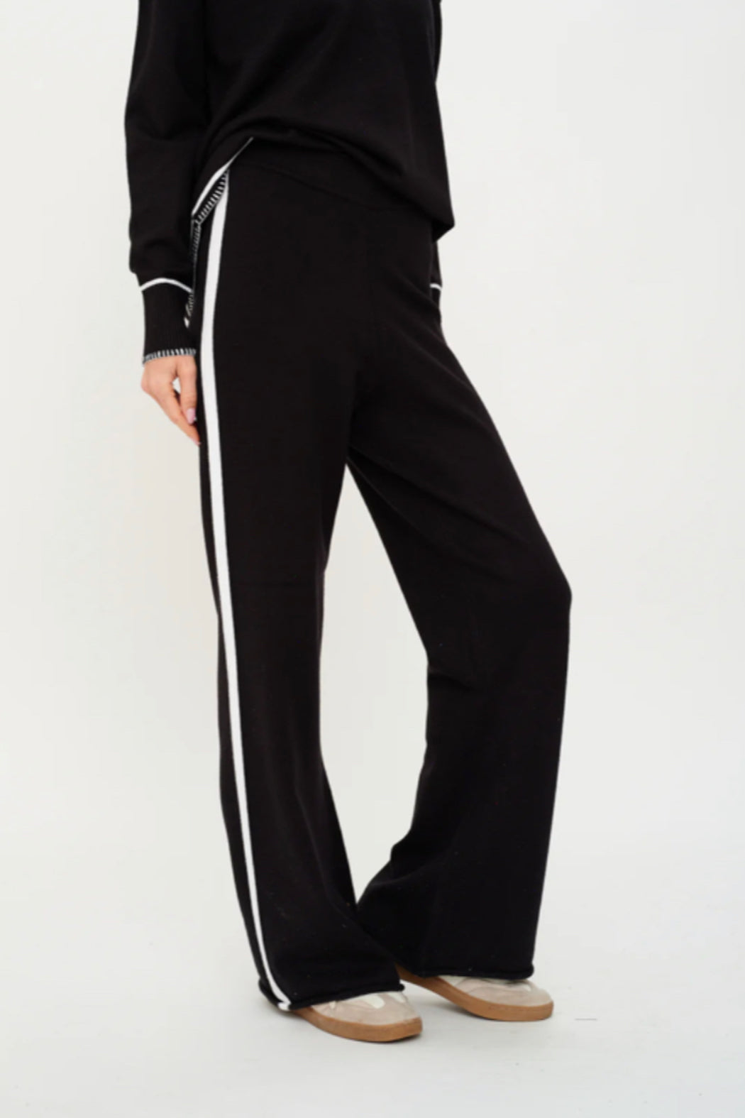The kellie pant brings a fun twist to your wardrobe with its cozy feel. Featuring a stripe down the side of the leg, these pants stand out. Pair it back to the kellie top for an instantly chic outfit.