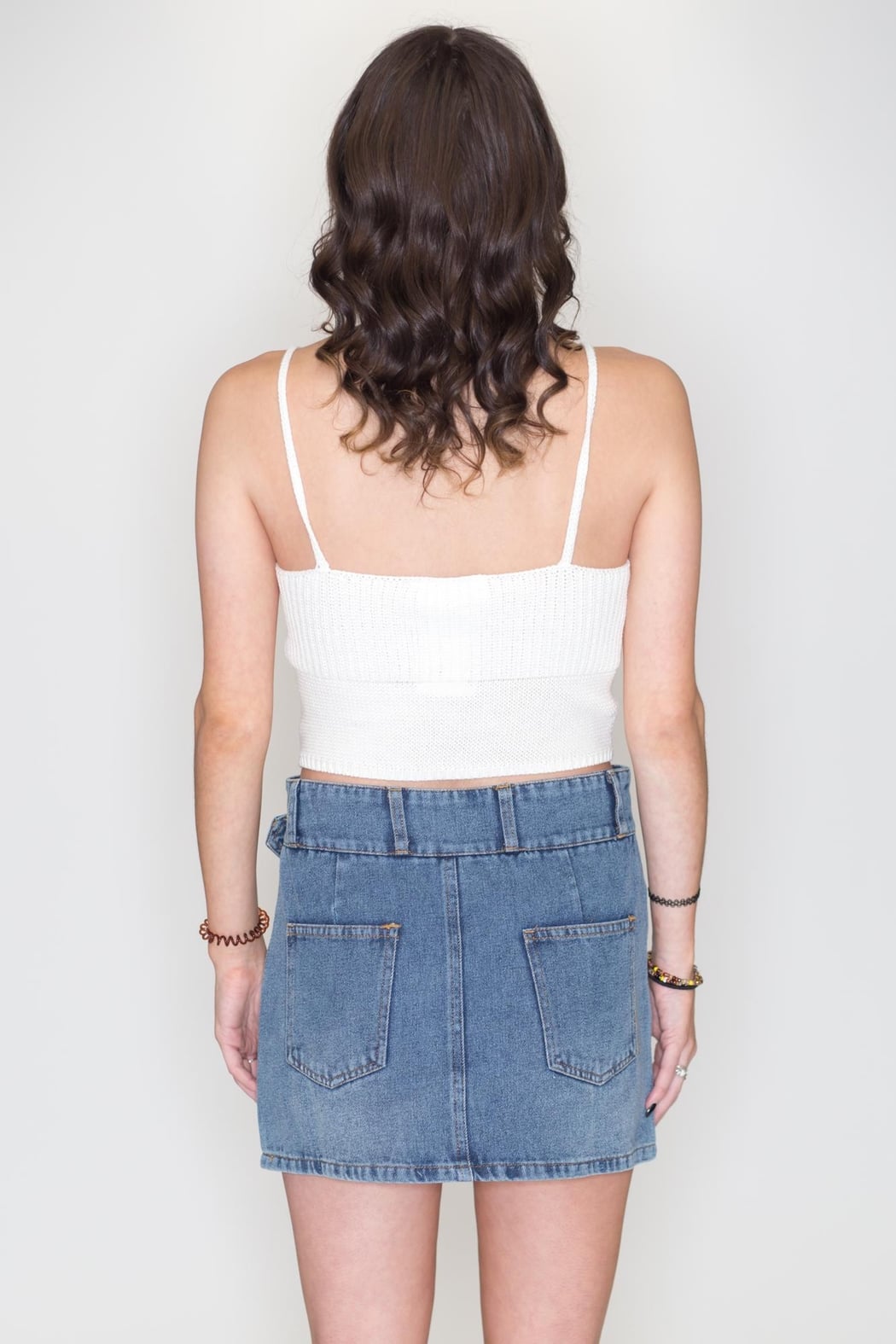 Showcasing ribbed construction, this top has a scoop neck, spaghetti shoulder straps and a fitted cropped bodice. The lace-up detailing at front lends a flirty appeal to an otherwise basic style.