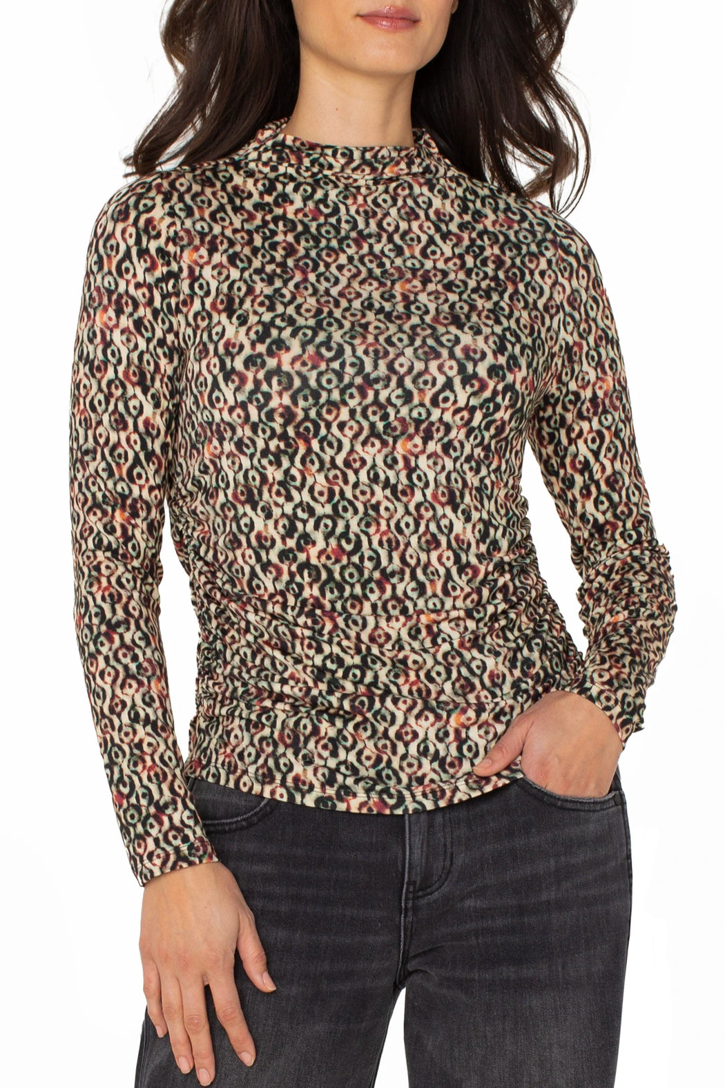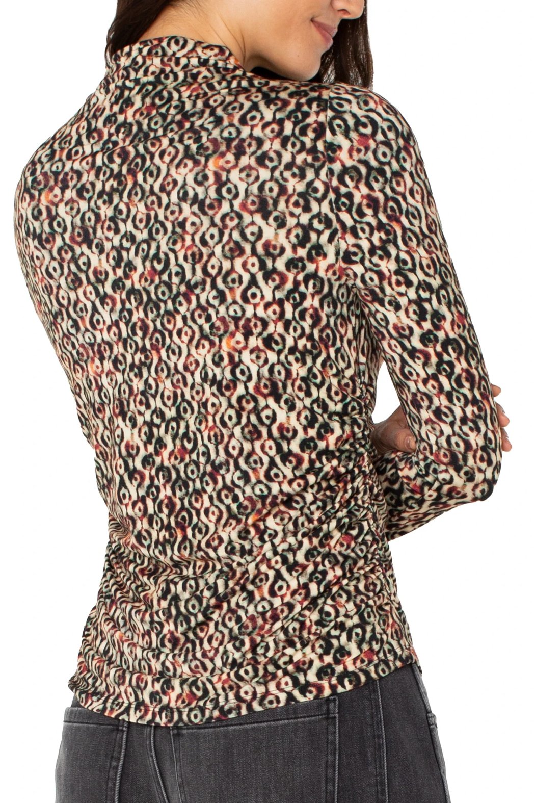 This statement knit is designed with a mock neck, subtle shirring, and an eye-catching geo ikat print that adds movement and depth. With just the right amount of stretch and a flattering drape, it’s an effortless way to elevate denim, trousers, or layered looks. DETAILS: 23- 1/2" High Shoulder Point Mock Neck Long Sleeve Shirring details Liverpool Exclusive Print Wash inside out, Hand wash cold with like colors, Only non-chlorine bleach when needed, Reshape carefully during wet, Dry flat, Cool iron if needed, Or dry clean.