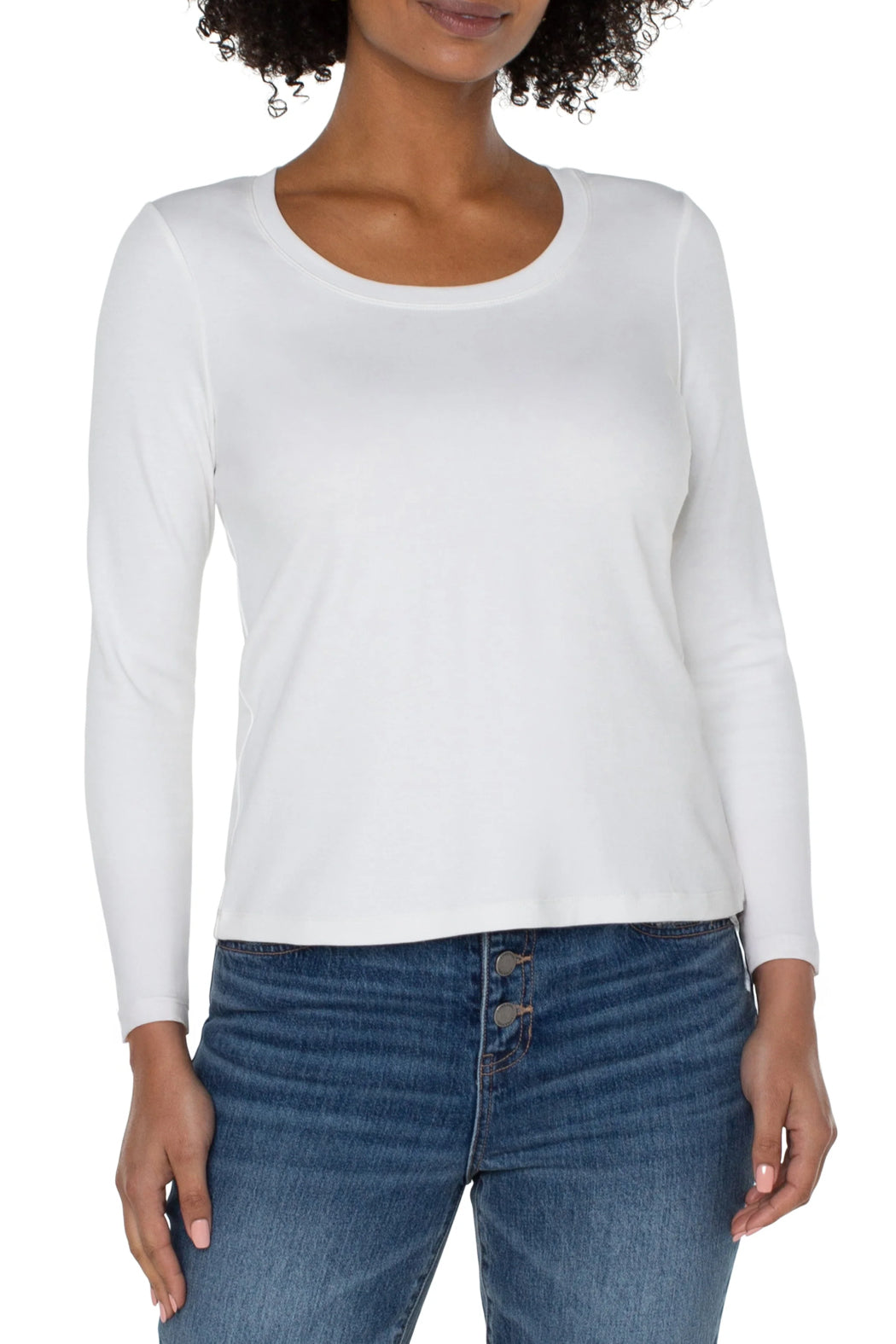 With its flattering scoop neckline and fluid drape, this long sleeve knit top brings ease and polish to everyday dressing. Crafted from a silky-soft blend with just the right amount of stretch, it’s a refined essential you’ll reach for again and again.