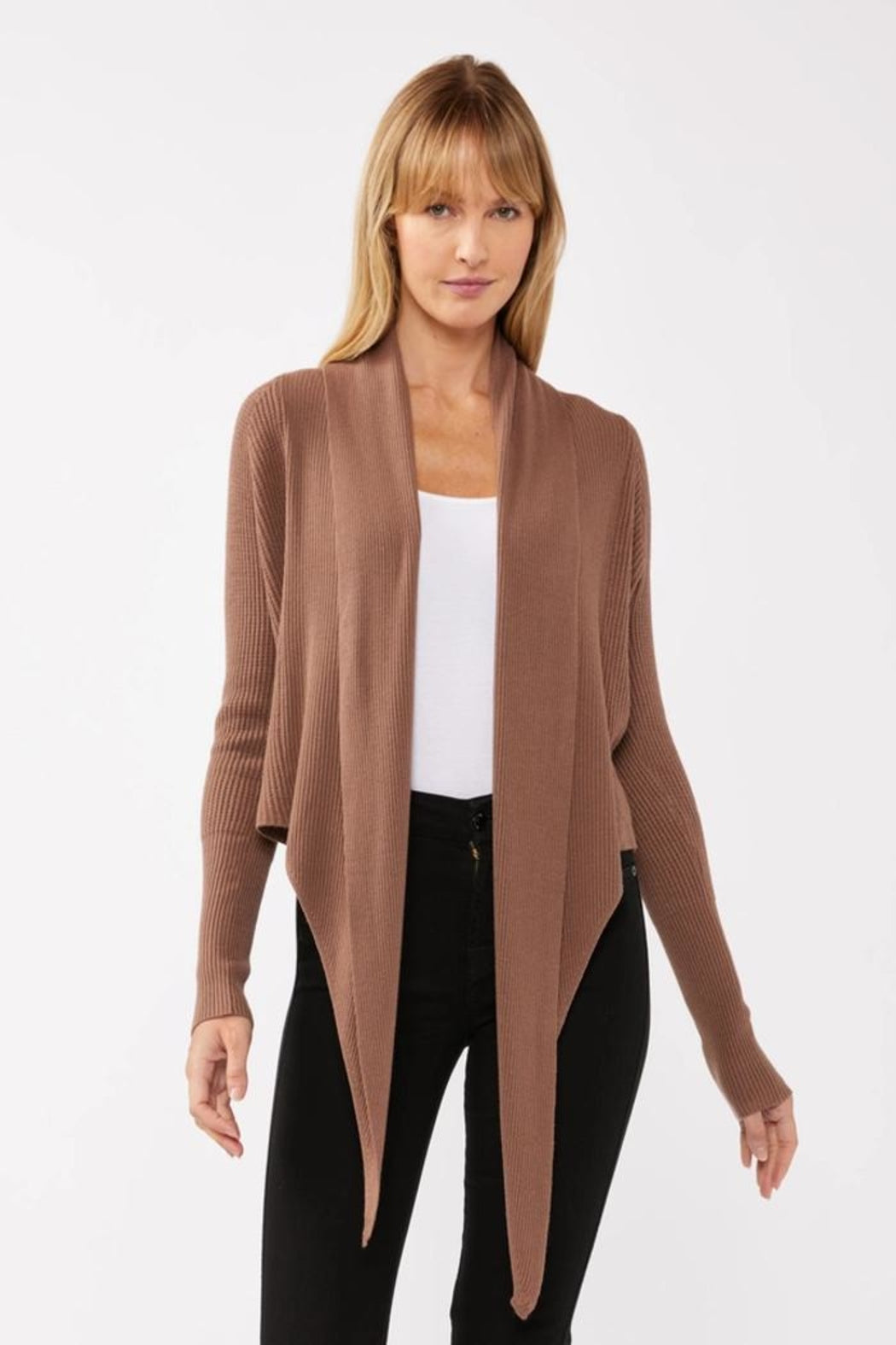 Elevate your layers with this lightweight waffle knit cardigan in a rich mocha tone. Designed to wear three ways—open front, tied, or wrapped—this versatile piece transitions effortlessly from casual to polished. Whether you're headed to brunch, layering up for the office, or styling a travel-ready look, it delivers comfort and elegance in one.
