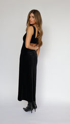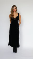 Elevate your evening wardrobe with our Velvet Maxi Slip Dress with Lace Detail. Crafted from luxuriously soft velvet, this dress features a flowing maxi silhouette and delicate lace accents that add a touch of romance and sophistication. The slip-style design drapes effortlessly over the body, offering a flattering and elegant fit. Perfect for date nights, holiday parties, or special occasions, this dress pairs beautifully with heels and minimal accessories for a chic, timeless look.