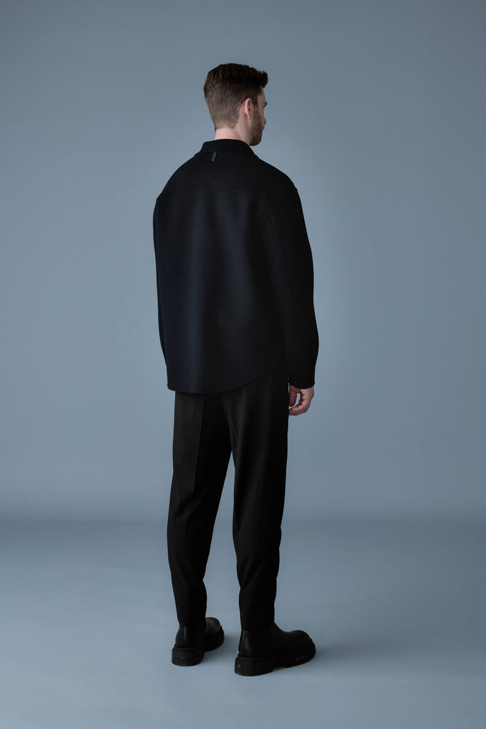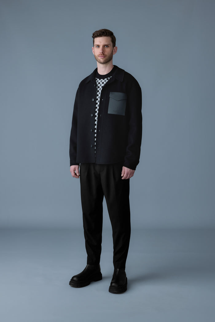 Mackage Mens Emmanuel Double-Face Wool Overshirt with Leather Patch Pocket