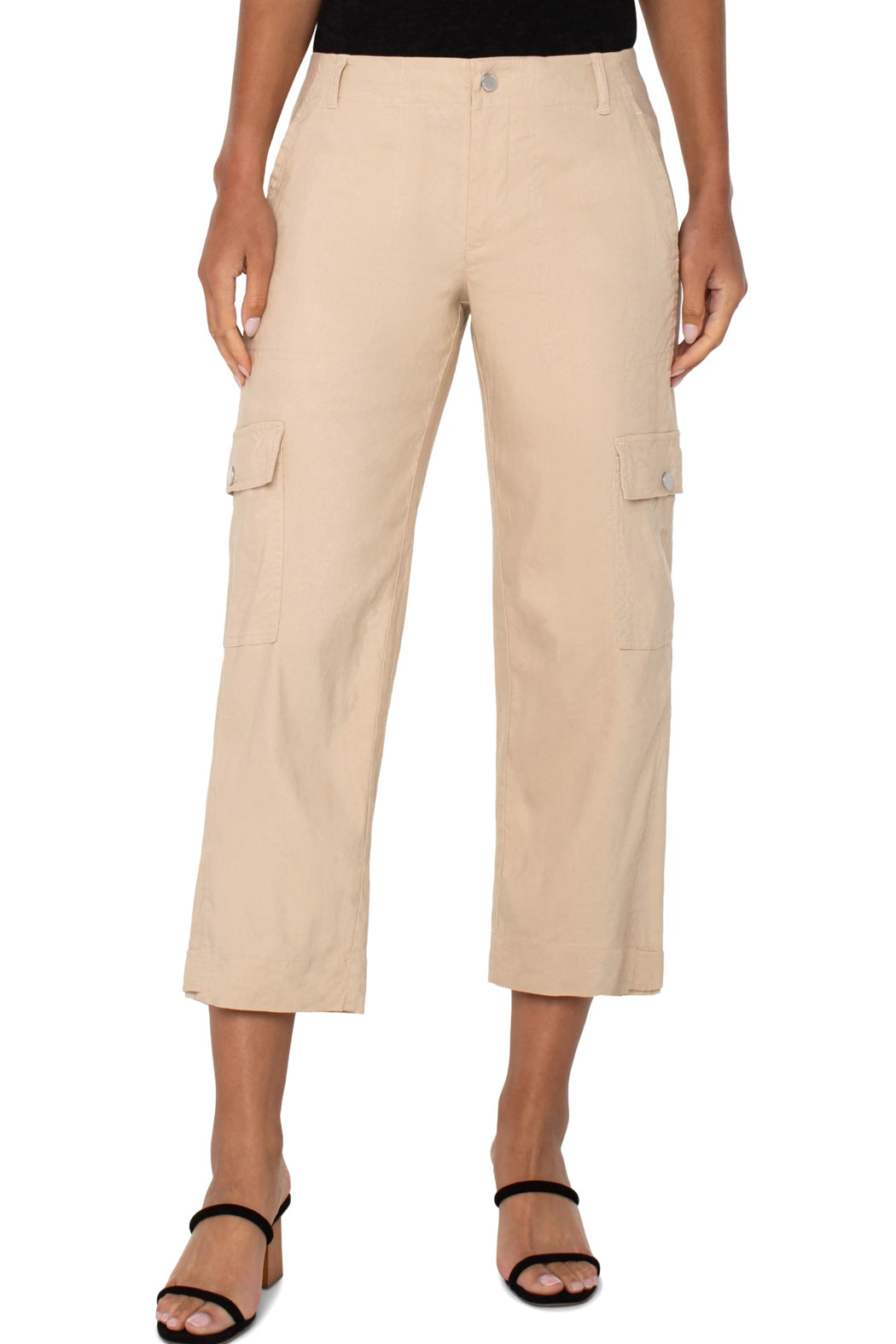 Our Utility Crop cargo pant is designed in a textured stretch woven for ultimate comfort and style. Featuring tonal stitching for a clean and chic look. These pants prove that utility can be versatile and elevated featuring cargo pockets and an adjustable tab hem. Throw on a tee and jacket for a weekend out on the town!