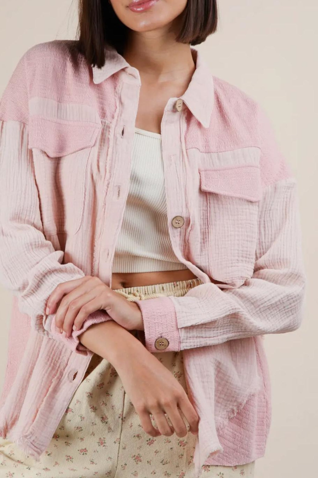 - Mineral Washed Oversized Gauze Shacket Jacket