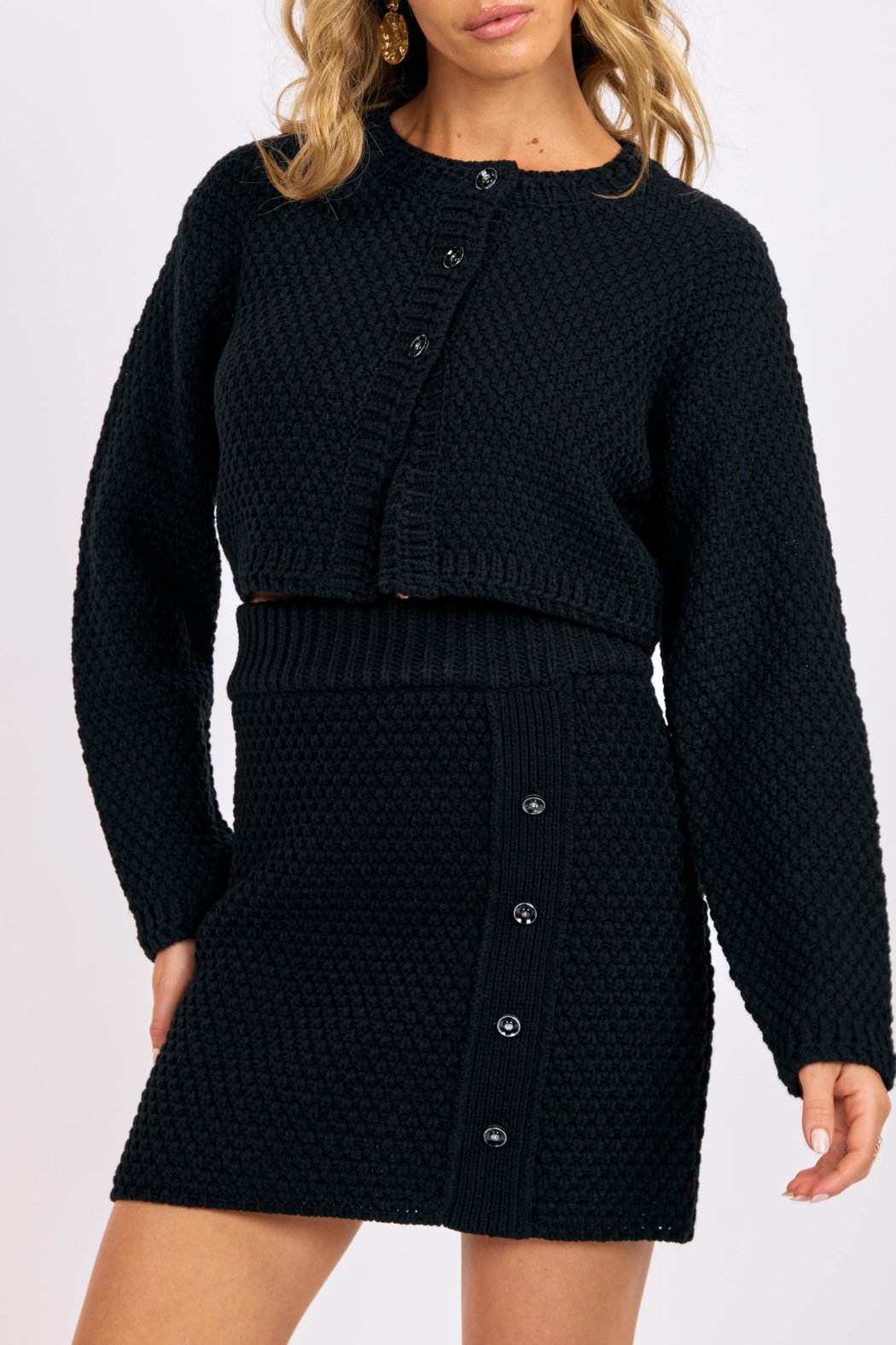 ODESSA WAFFLE KNIT BUTTON CHUNKY CROP CARDIGAN FABRIC: 100% ACRYLIC FIT IS TRUE TO SIZE MADE IN CHINA