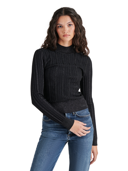 The Pamela Sweater is a great classic black sweater with ribbed detail.