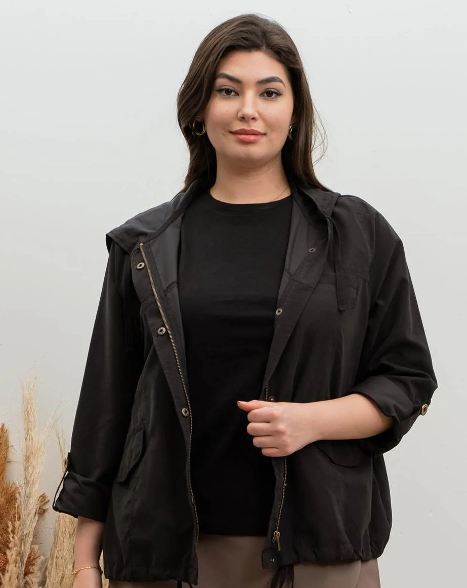 Plus Snap Button Zip Up Hooded Jacket