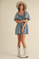 Puff Sleeve Babydoll Denim Romper