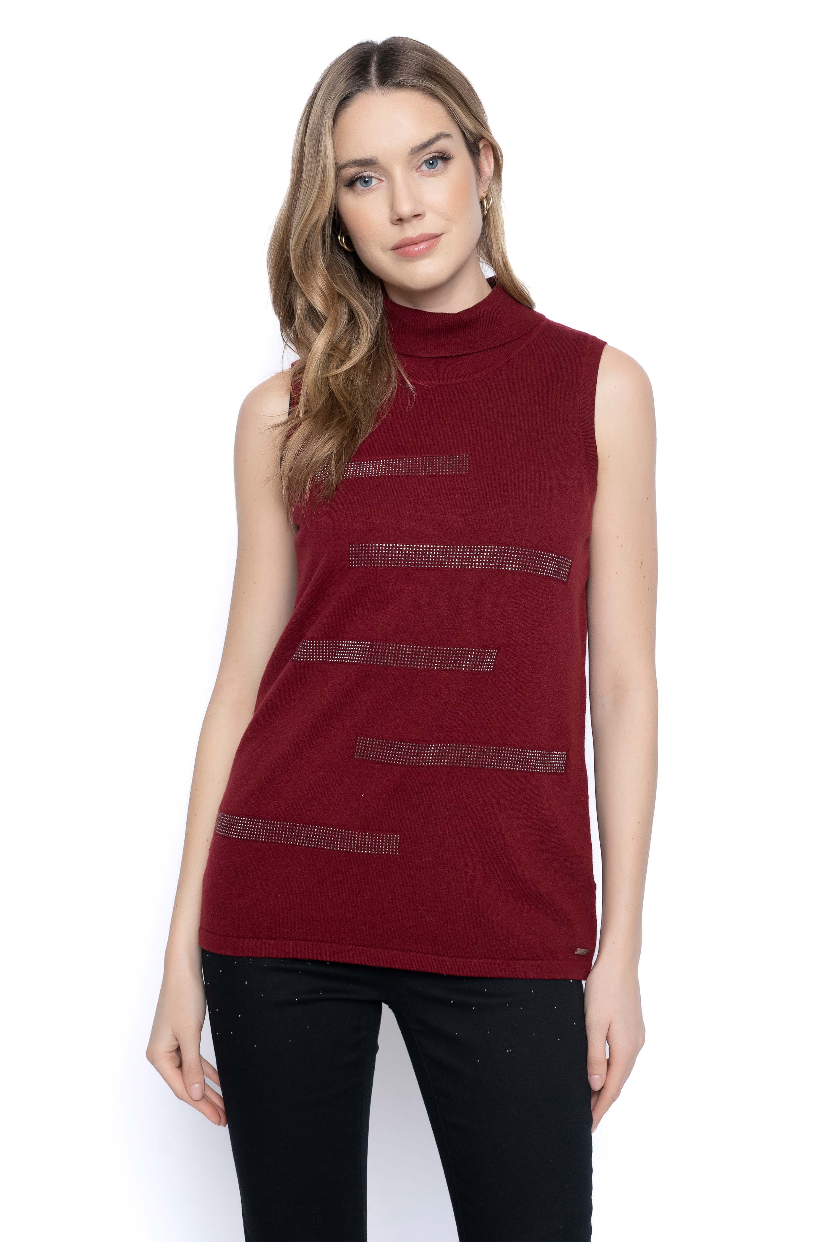 Our best-selling turtleneck in a brand-new design. This Rhinestone Embellished Neck Tank is everything you need on any occasion: rhinestone embellishments, crimson color, and cloud-soft knit fabric to slip into that fall cool-off look! Get it today to complete your outfit with this stylish tank.