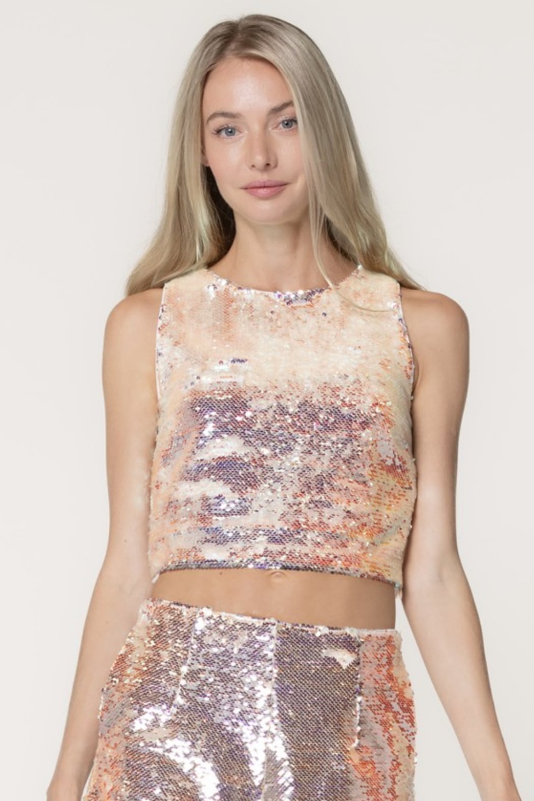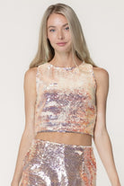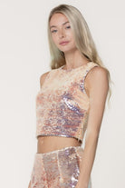 Turn the sparkle all the way up with this Rose Sequin Tank Top—the kind of shimmer that makes every room feel like your runway. This cropped stunner catches the light from every angle, giving you that effortless, lit-from-within glow. The racer silhouette keeps it modern and clean, while the full sequin finish brings the drama in the cutest way. Perfect for nights out, birthday plans, holiday glam moments, or anytime you want to be the sparkliest person in the photo.