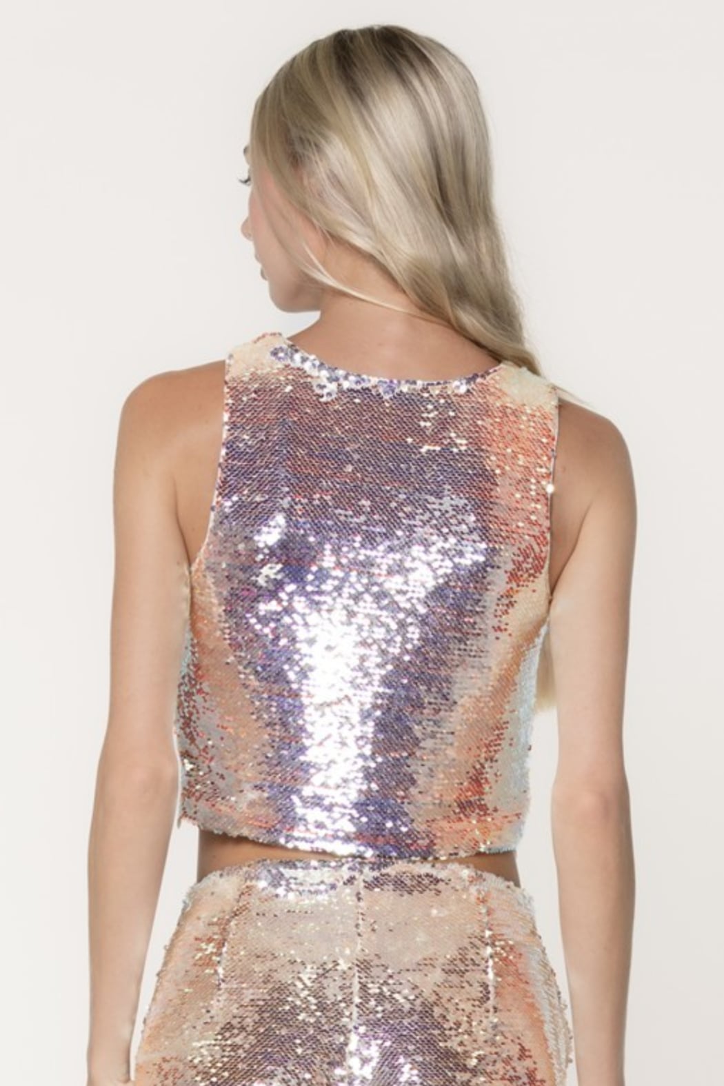 Pair it with the Rose Sequin Hot Shorts for the full "main character" vibe, or heels for a chic party look. Add soft gold jewelry to keep the glow going.