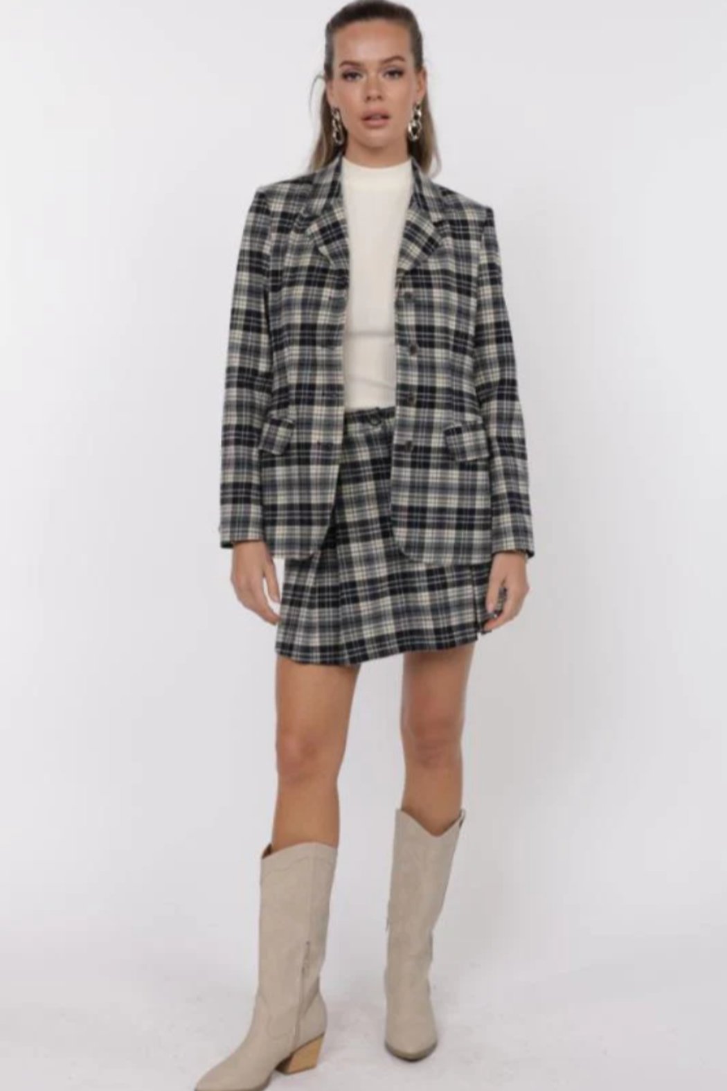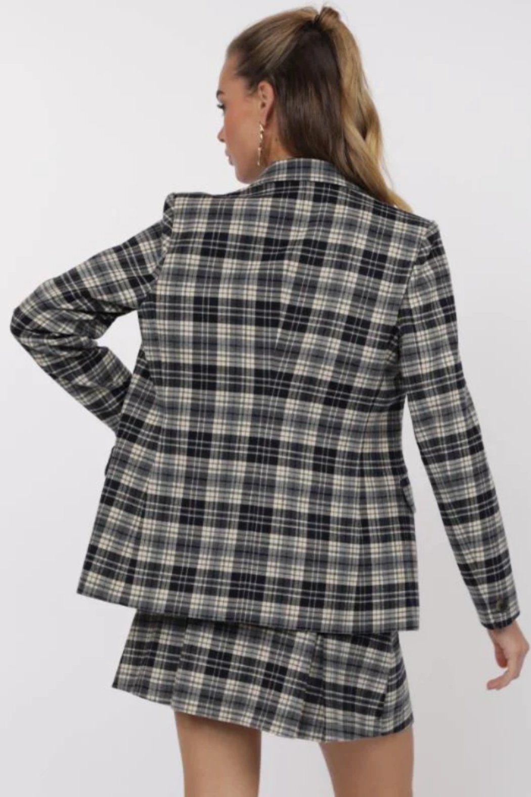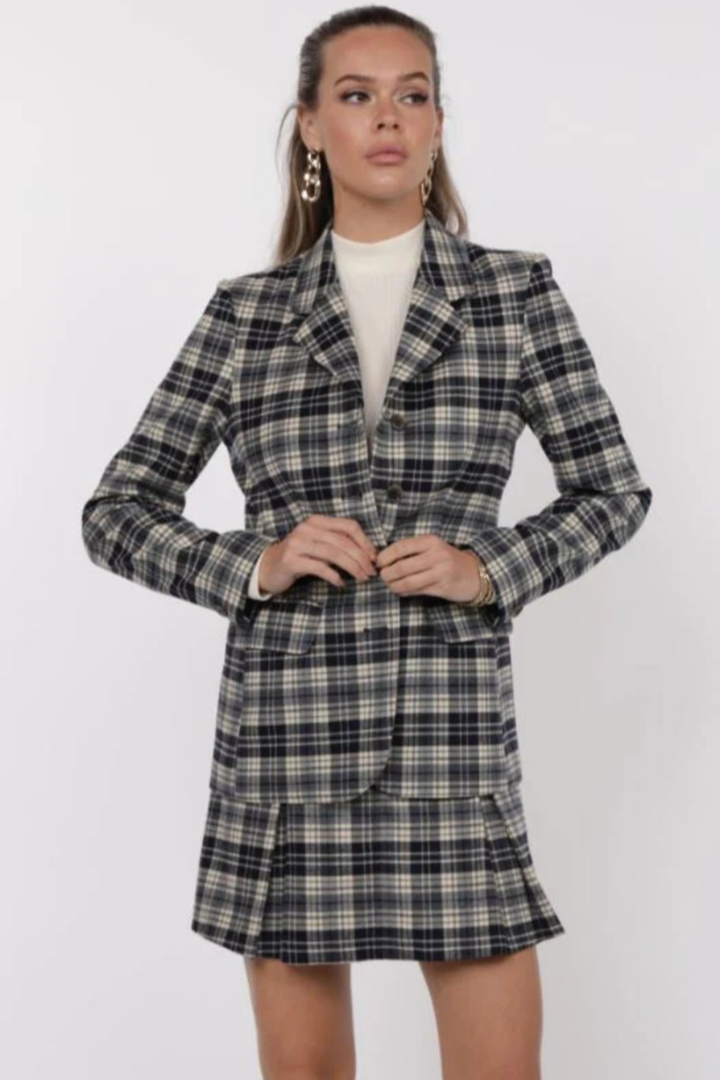 Sage The Label Wilson Navy & Cream Plaid Blazer