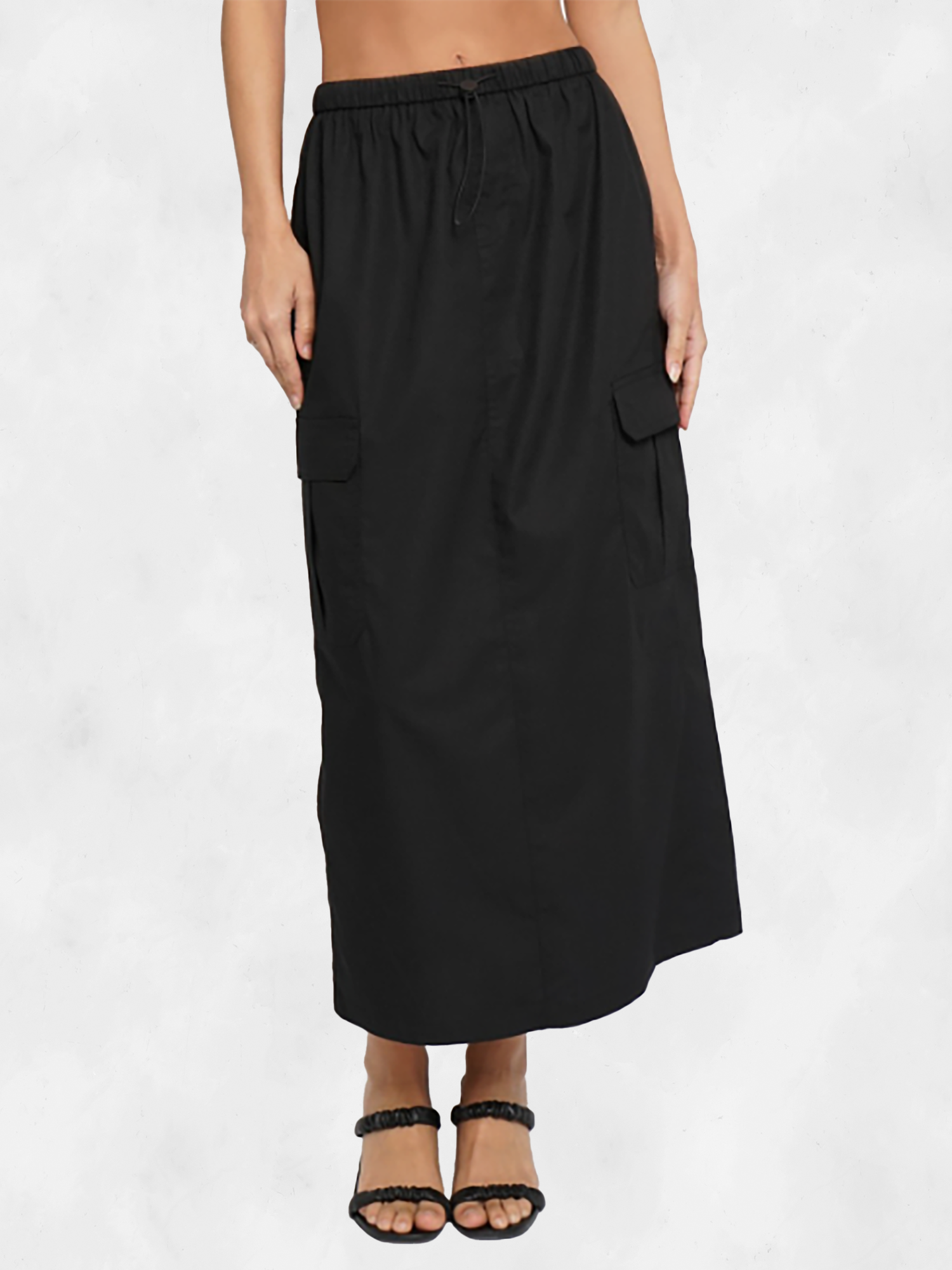 Description - Effortlessly flow into comfort and style with our Sans Souci Pull Cord Maxi Skirt. This breezy silhouette features a comfortable elastic waistband and a cinching pull cord for a figure-flattering fit.