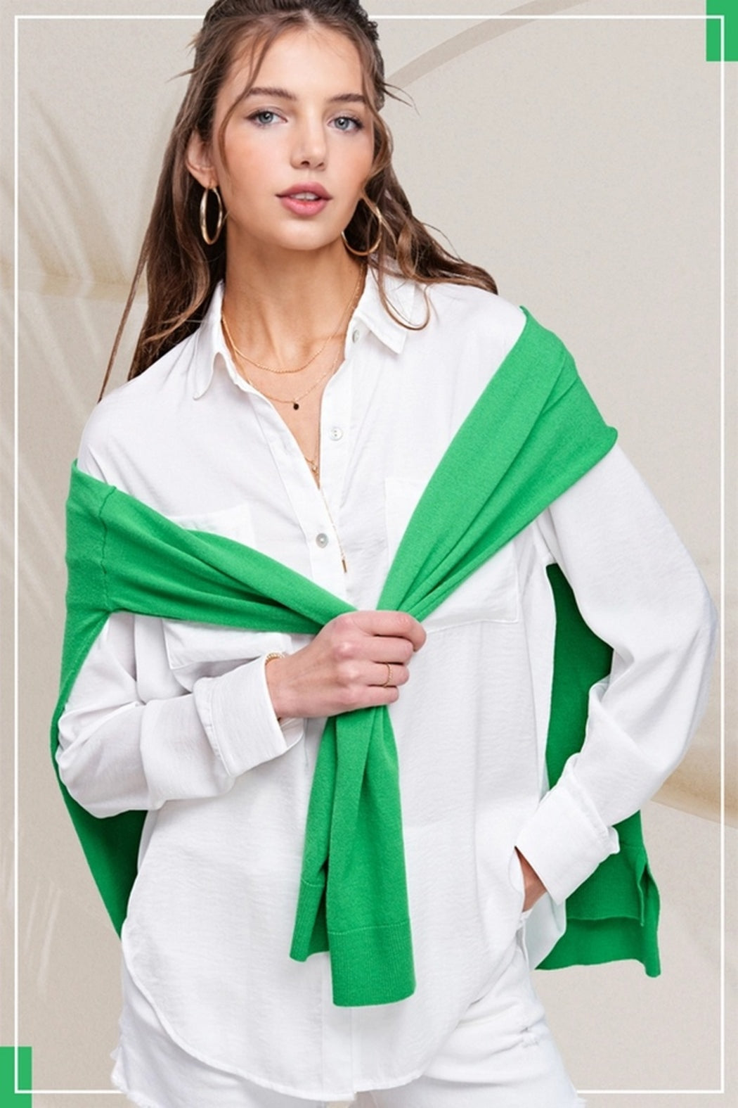 Effortless style meets everyday comfort with our silky, lightweight button-down shirt. Designed with a chic collared neckline, relaxed drop-shoulder sleeves, and roomy chest pockets, this versatile piece drapes beautifully for a flattering, billowy fit. Perfect for layering year-round, it transitions seamlessly from workdays to weekends—pair it with tailored trousers for an office-ready look or style it with denim shorts for casual days.