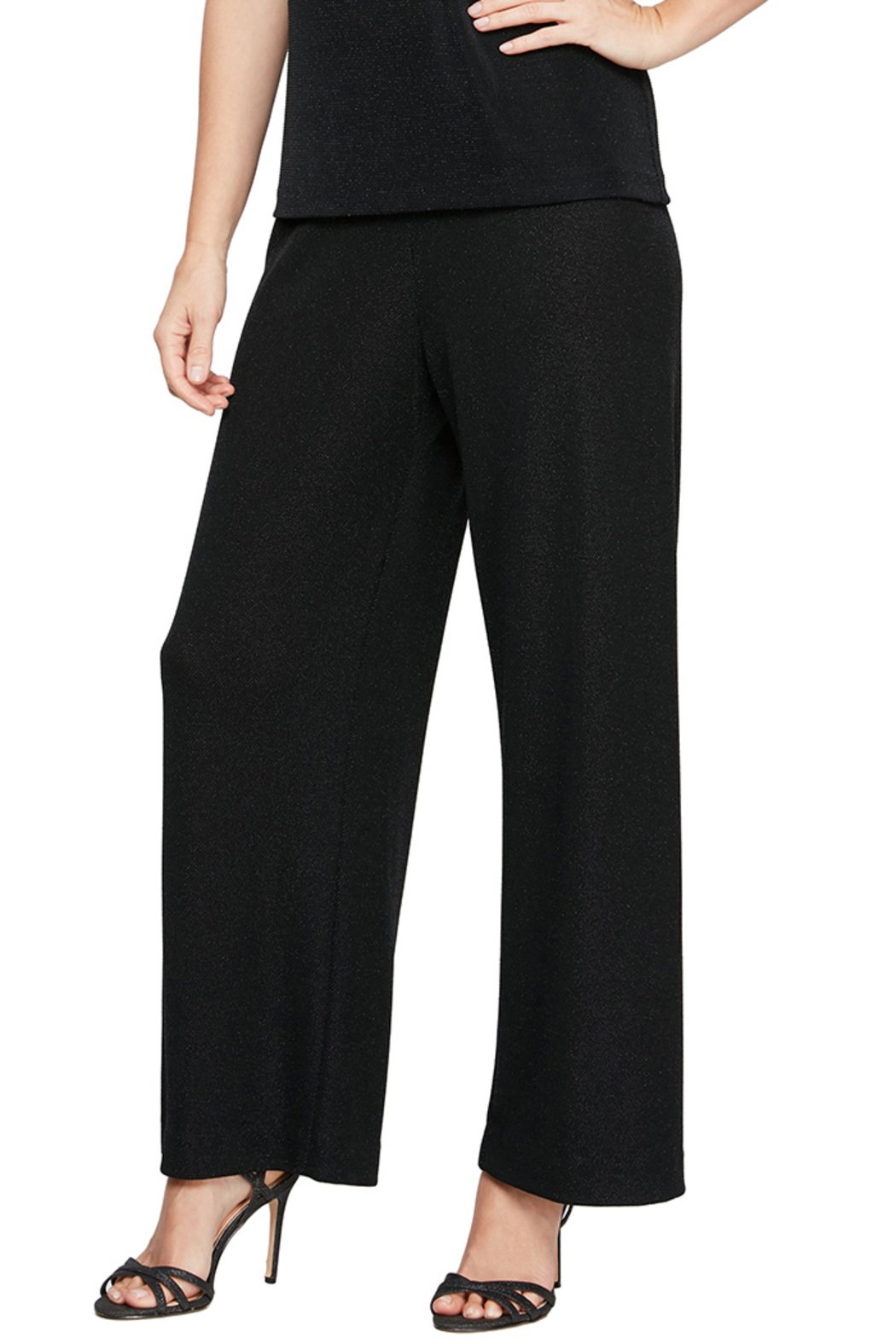 These are the perfect metallic straight leg knit pant. They can easily bring any outfit to the next level with just the touch of metallic throughout the entire pant. They have an elastic waistband that makes it easy to wear all day long.