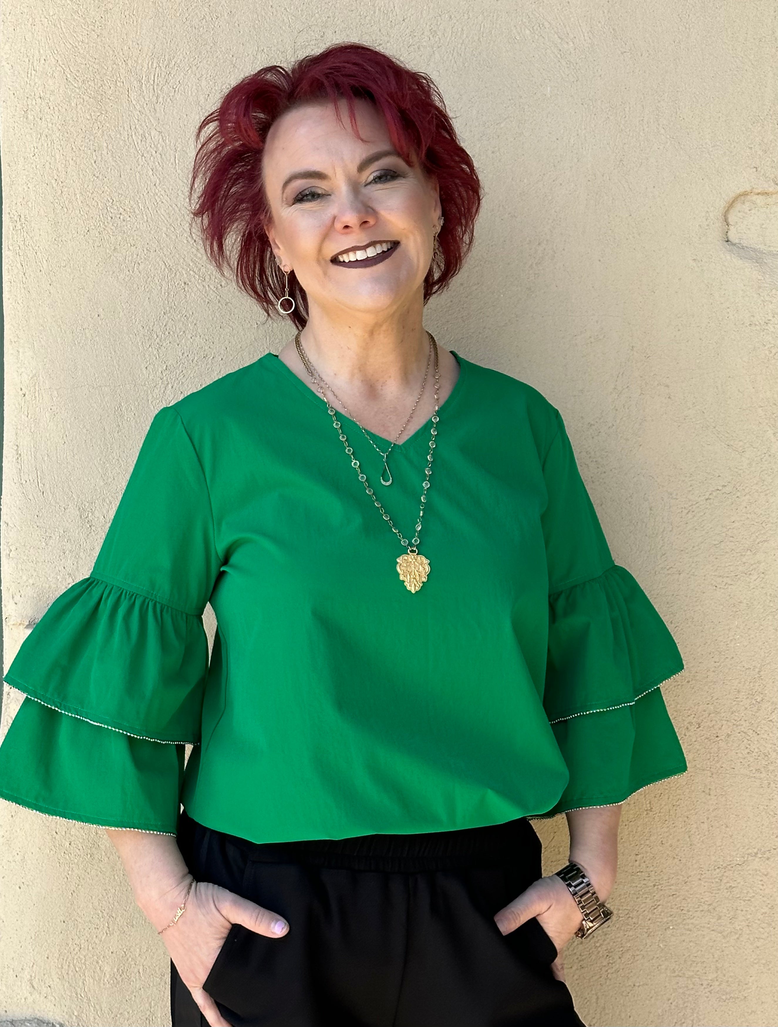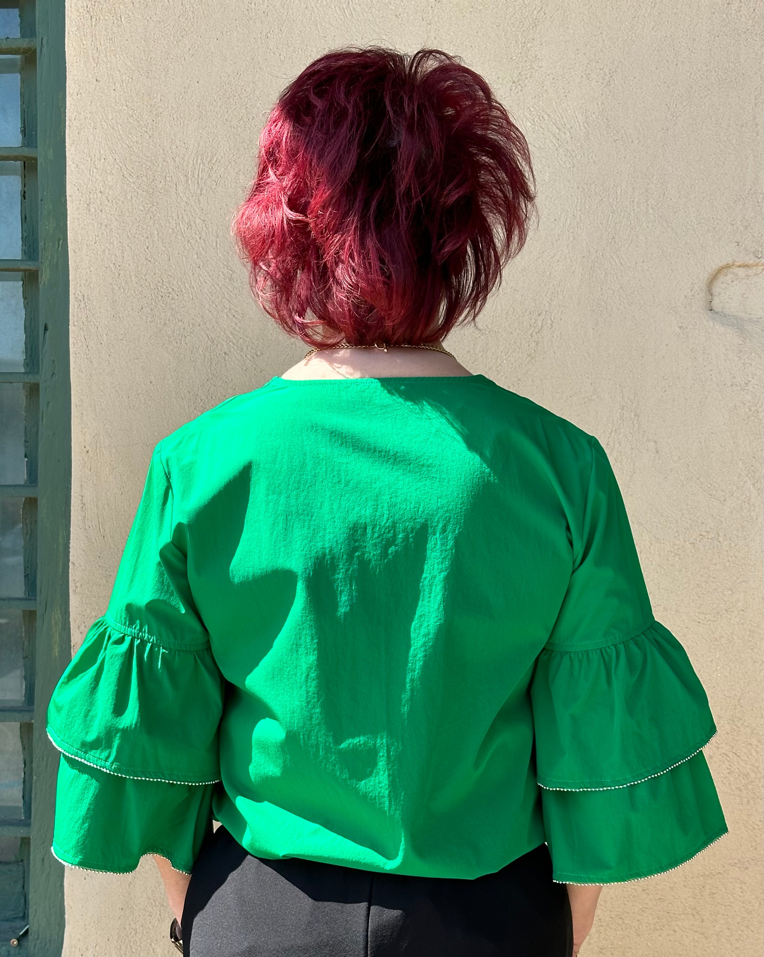 Challenge the limits of fashion in the Wesenia Tunic Top. Featuring lightweight, parachute material and silver ball chain detail on ruffle sleeves, this daring top allows you to express your unique style and take risks. With a relaxed, v-neck fit and emerald green hue, you'll be turning heads and feeling bold.