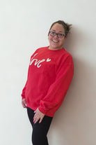 The cursive “love” lettering and sweetheart detail add a charming touch, while the relaxed crewneck silhouette keeps it comfy and easy to wear all day.