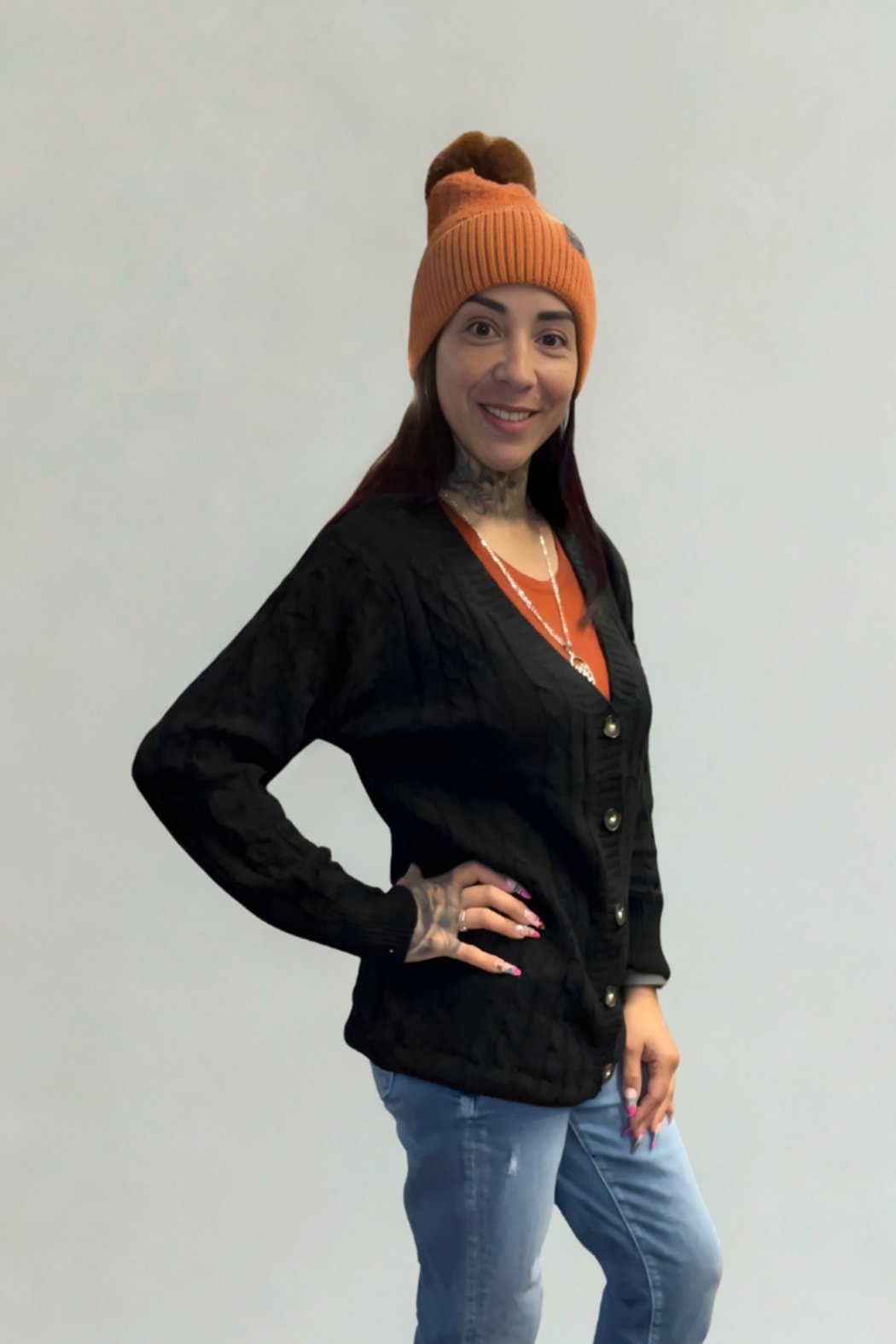 Cozy up in effortless style with this Oversized Knit Button Cardigan, your must-have layer for cool days. Soft and mid-weight, it features a relaxed fit, long sleeves, and an easy open front with button detail. The solid rib-trim design keeps it timeless and versatile — perfect for everyday wear, errands, work, and weekend outings.