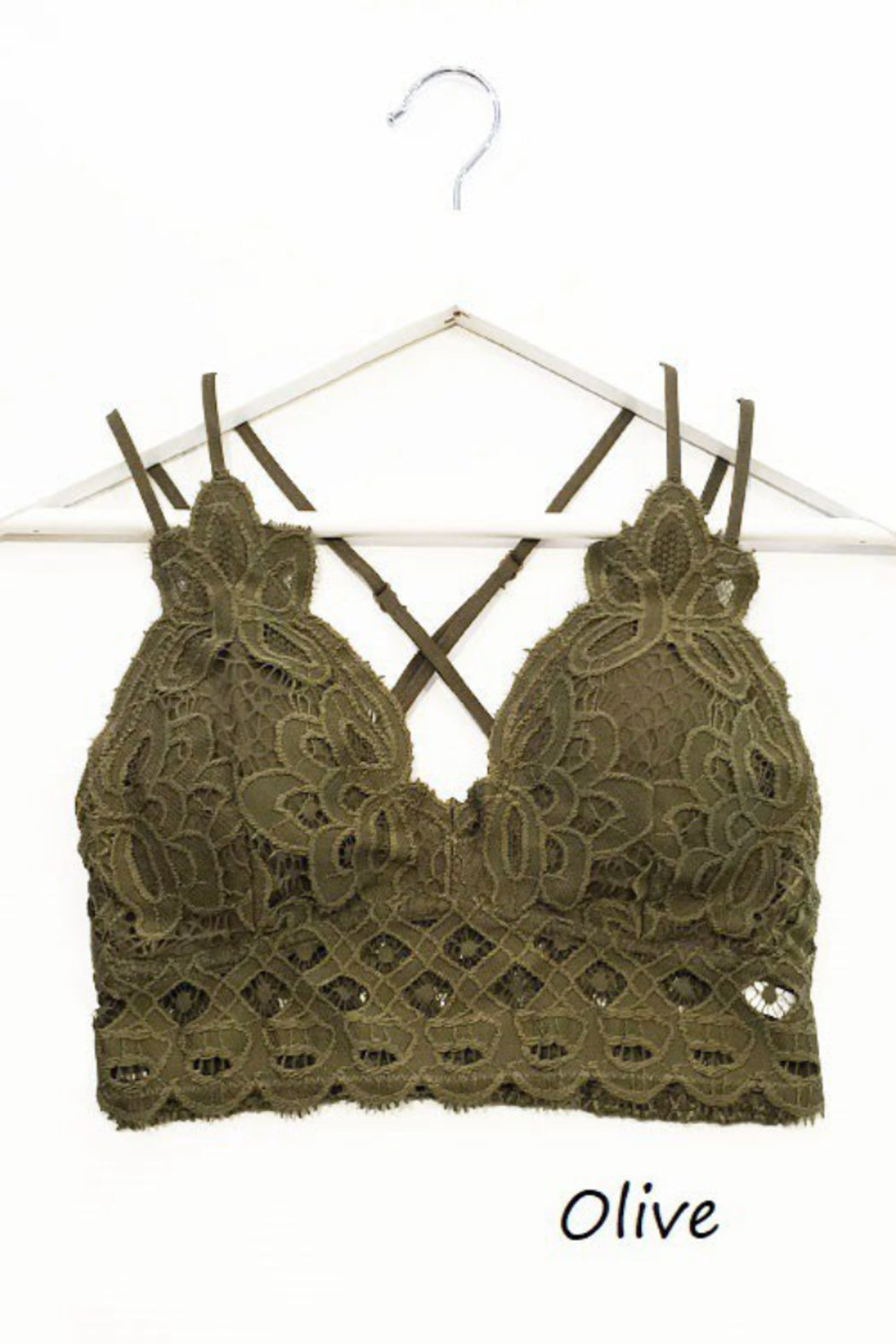 This beautiful crochet lace bralette is great for anytime of year! Our bralette features a pull-over style, all-day comfort, removable bra pads, adjustable criss-cross straps at back, and the perfect amount of stretch. These are perfect under dresses, tops, sweaters, kimono...the list is endless! We promise you'll be back to buy more!