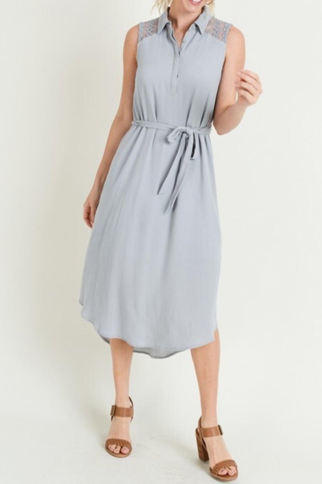 COLLARED DIPPED HEM MIDI W/ BELT with Detailed back panel