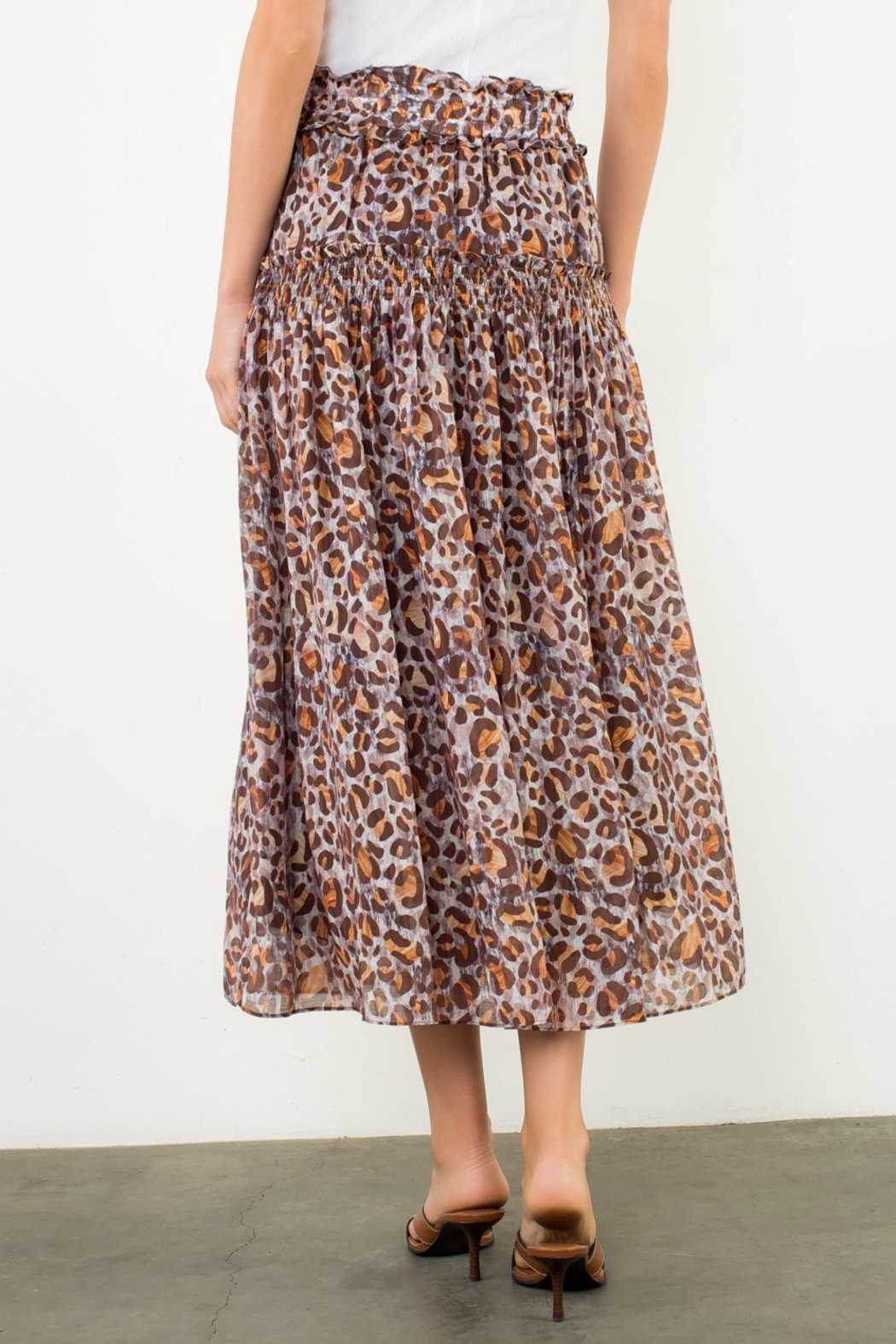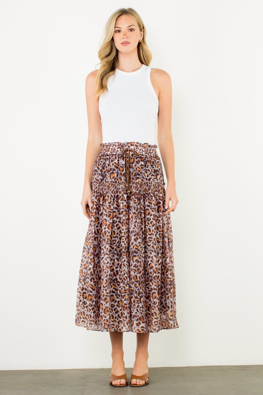 LONG TWO TIERED MIDI SKIRT WITH RUCHED DETAILING AND VELVET RIBBON TIE