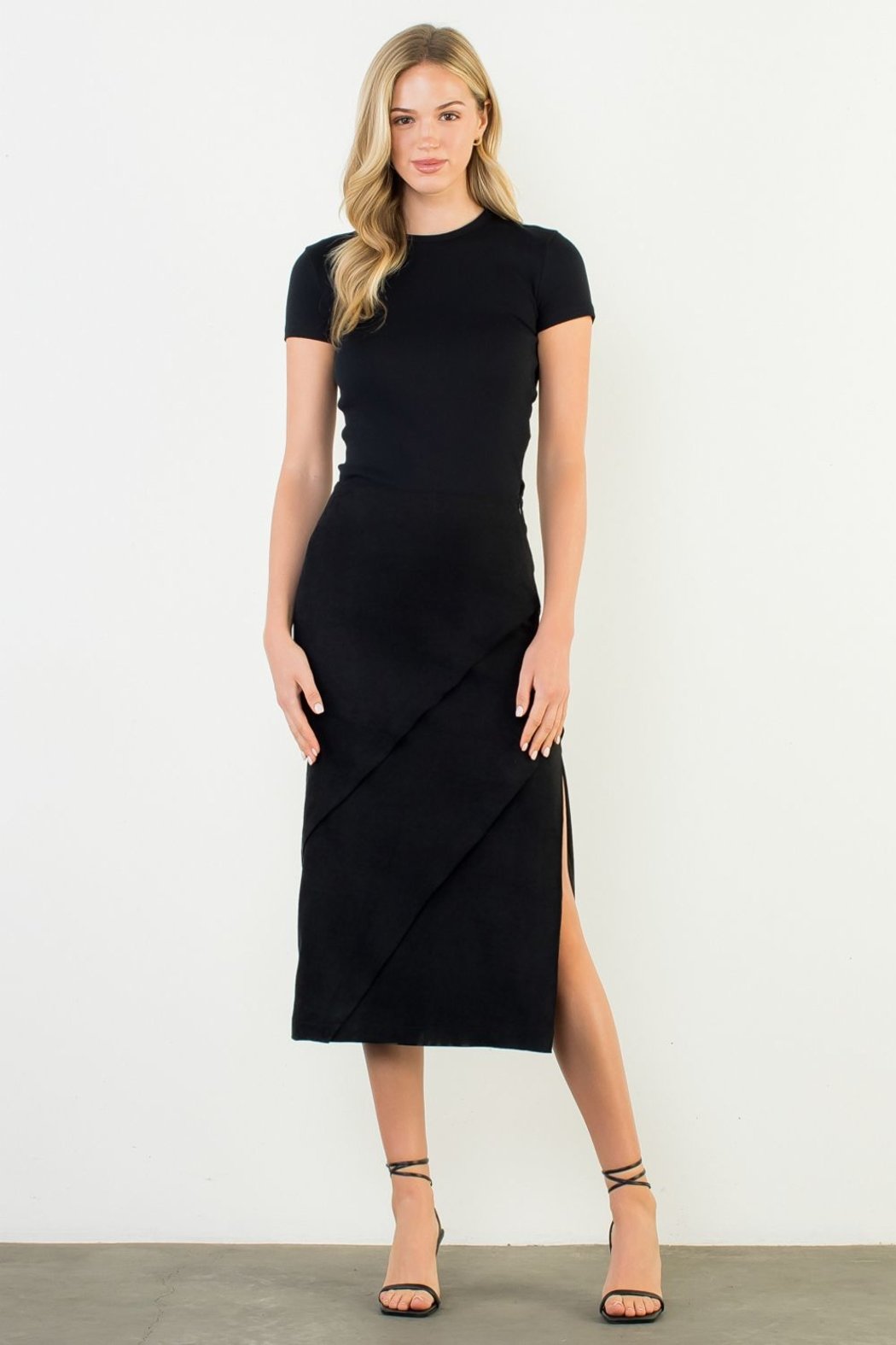 SLEEK SUEDE MIDI SKIRT WITH BIAS CUTS AND SIDE SLIT