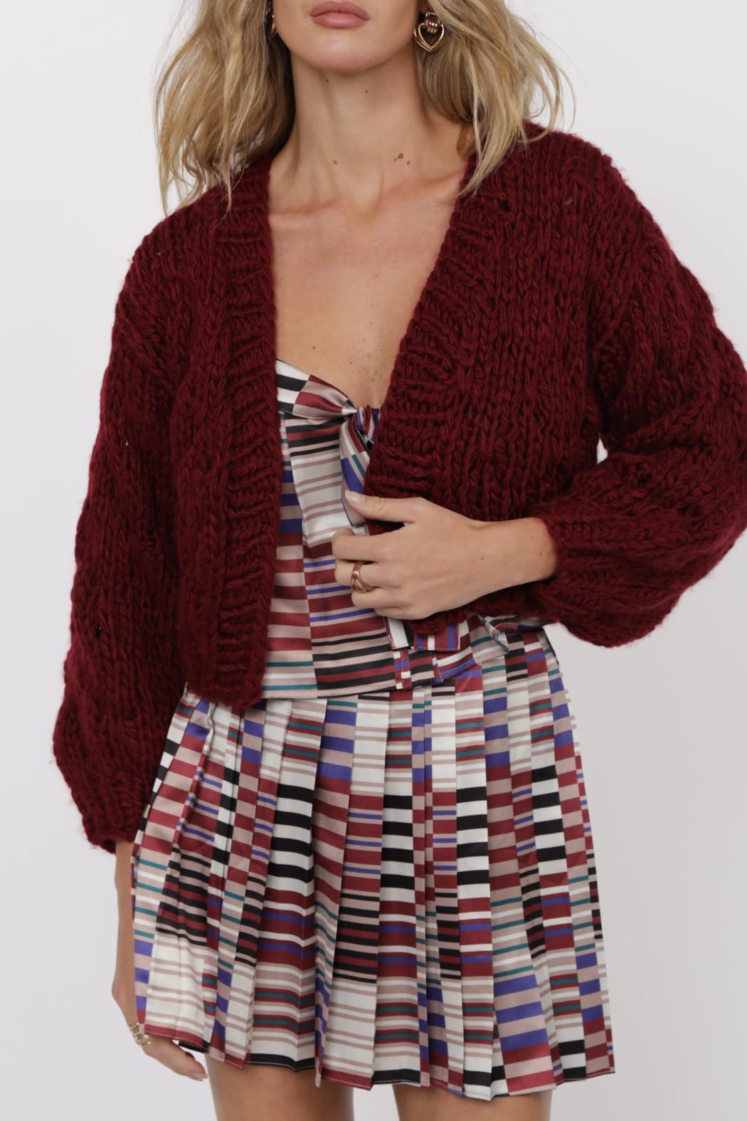 THIS & THAT SLIGHTLY CROPPED BIG SLEEVE CHUNKY CARDIGAN