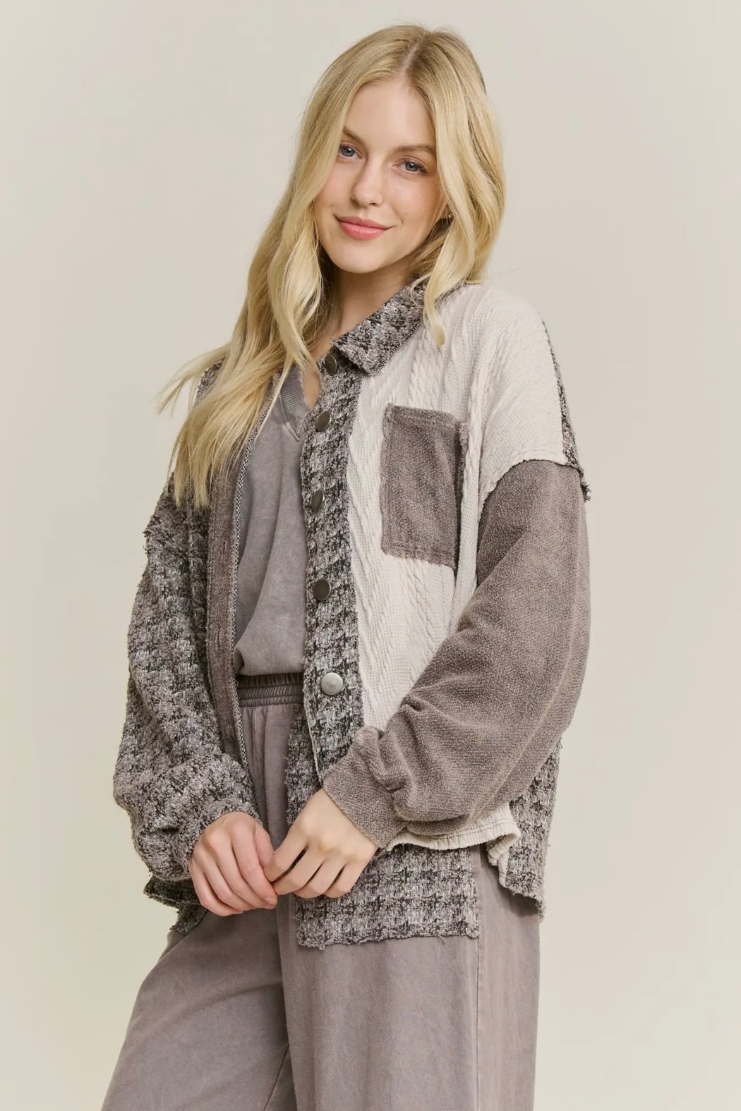 MINERAL WASHED TWEED SWEATER DETAIL SHACKET