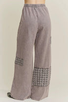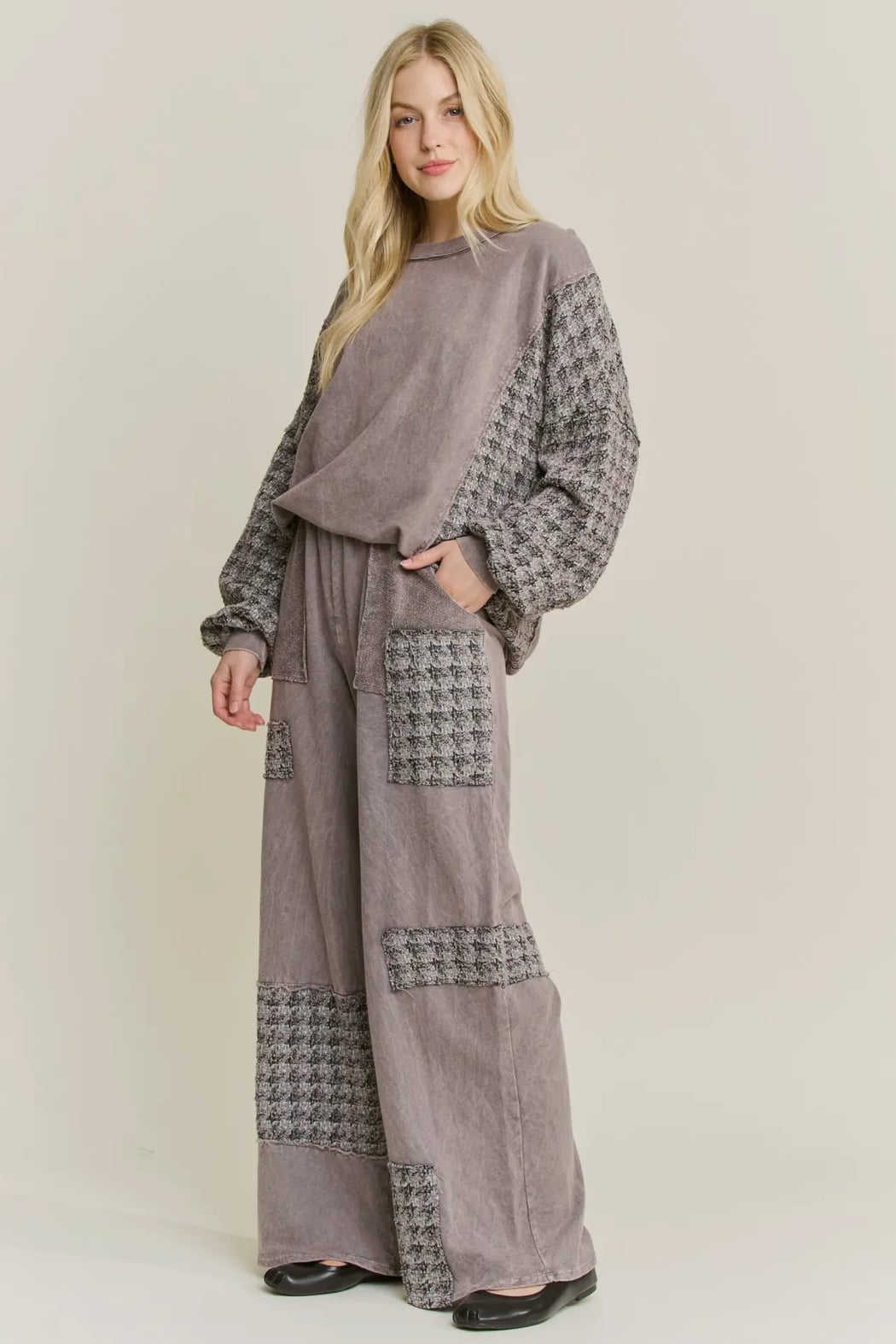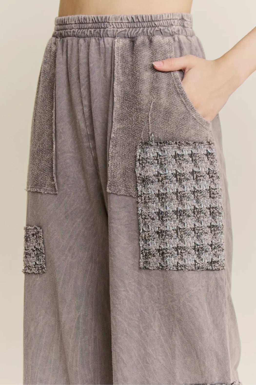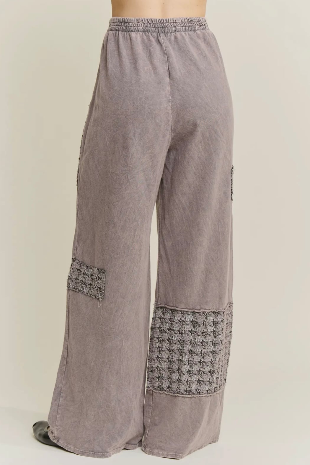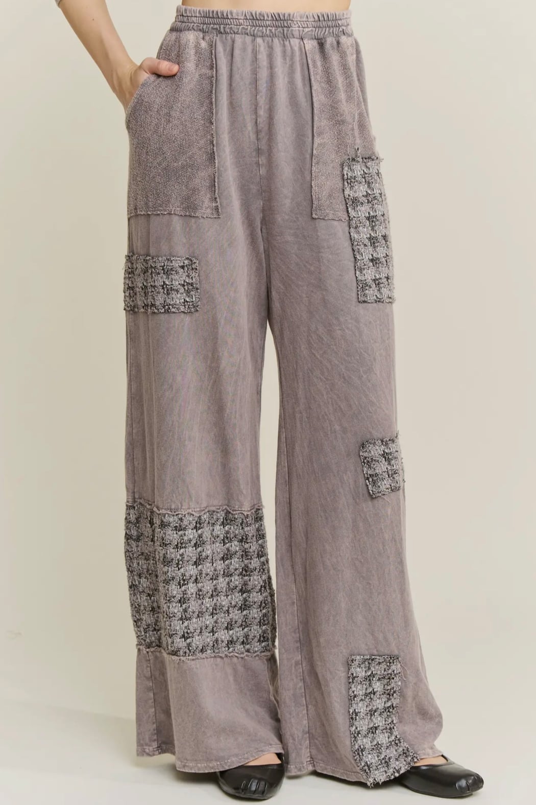 MINERAL WASHED TWEED BLOCK WIDE LEG PANTS WITH POCKETS