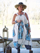 Embrace effortless style with the Bushel And A Peck Dress, designed for comfort and versatility. Featuring adjustable overall straps and a flattering A-line fit, this one-size dress is crafted from 100% cotton flour sack fabric, ensuring breathability and a soft touch against your skin. Perfect for casual outings or cozy days at home, this dress combines practicality with a charming aesthetic, making it a must-have addition to your wardrobe. Elevate your everyday look and enjoy the freedom of movement with this delightful piece!
