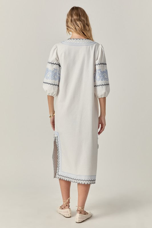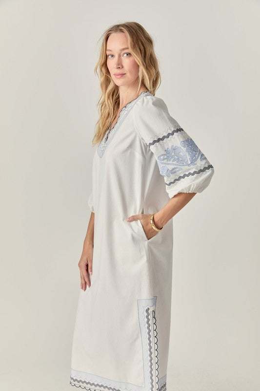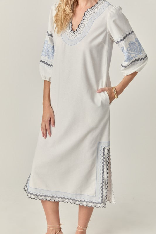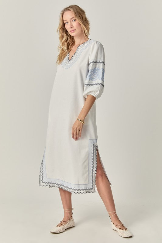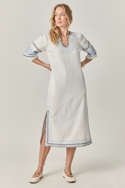 Elevate your wardrobe with the Agadir Midi, crafted from a premium linen blend for breathable comfort. This sophisticated midi-length dress features intricate embroidered detailing that adds texture and visual interest. Perfect for warm-weather occasions when refined style and comfort are equally essential.