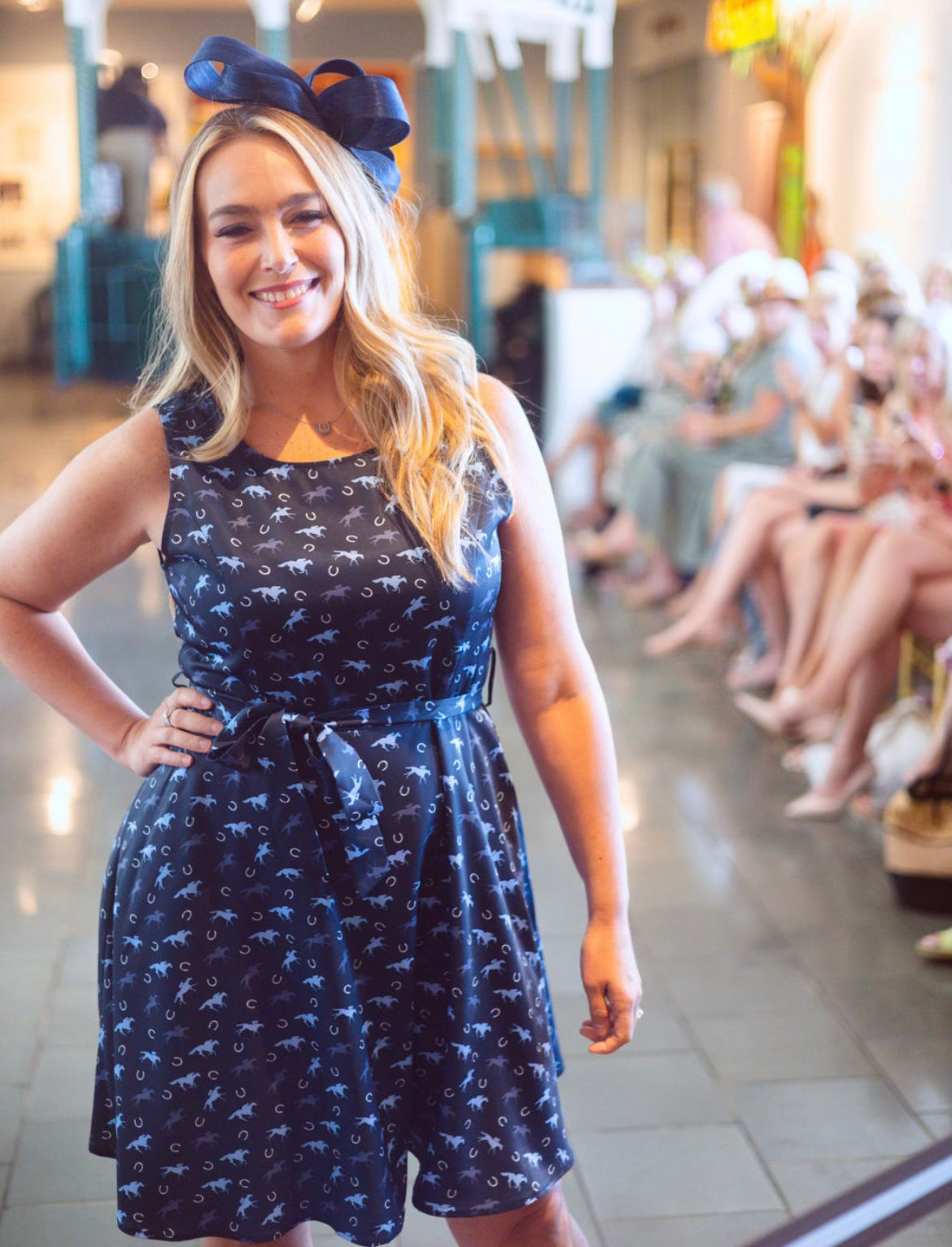 Saddle up for a stylish race day in our All Out Blue Horse Racing Flare Dress! This fit and flare dress features a playful all-over horse racing print and comes belted for a flattering fit. Plus, it has pockets for convenience and style. Perfect for a day at the races or any fun occasion!