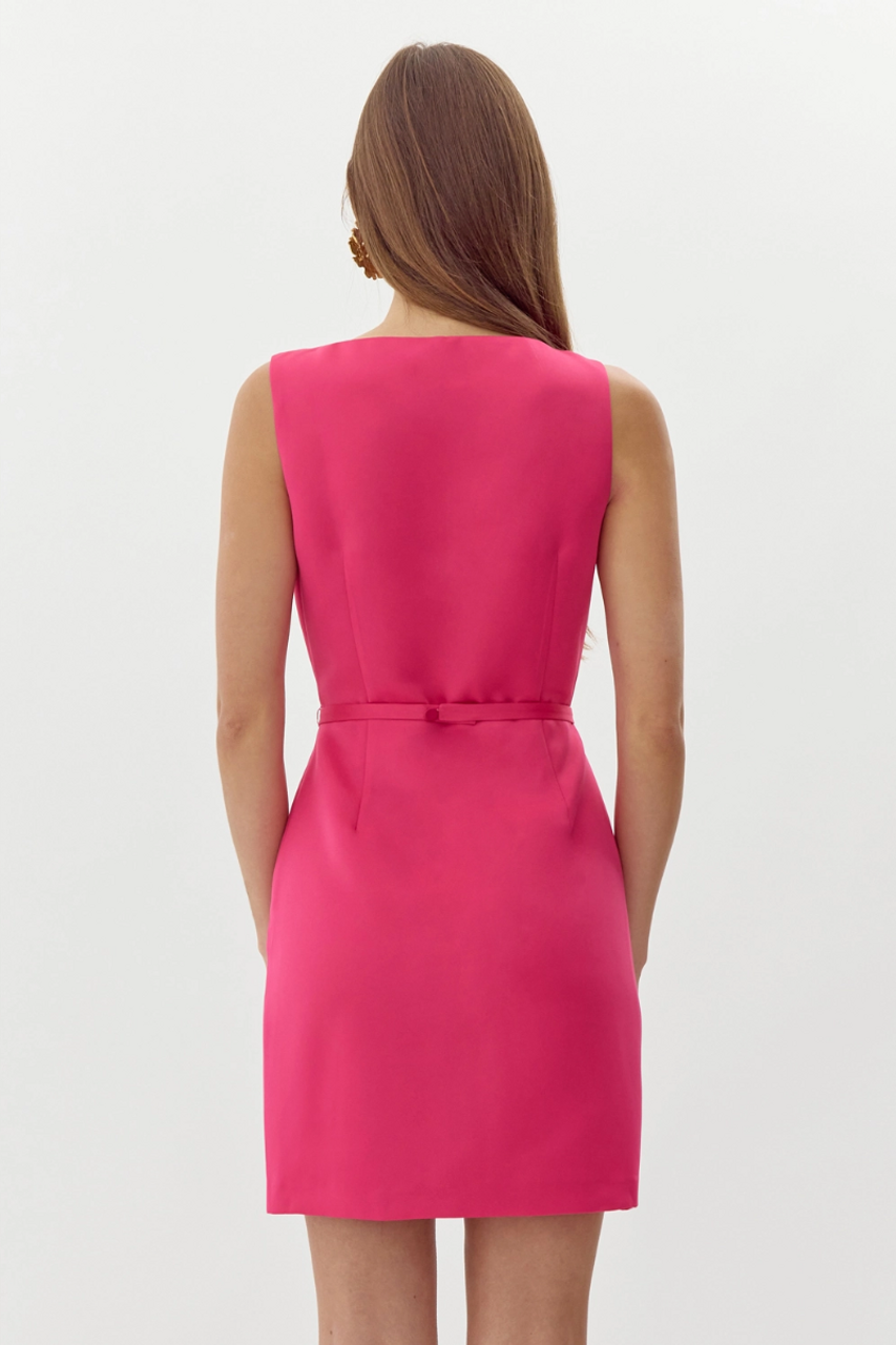 Barbara Dutch Satin Fit & Flare Mini Dress- Deep Pink