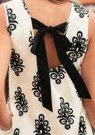Expertly designed for those warmer months, this Beige Geometric Sun Dress is perfect for any occasion. The stunning beige and black geometric print is both stylish and unique, while the bowtie back adds a touch of charm. Available in sizes small through X-Large for the perfect fit.