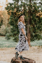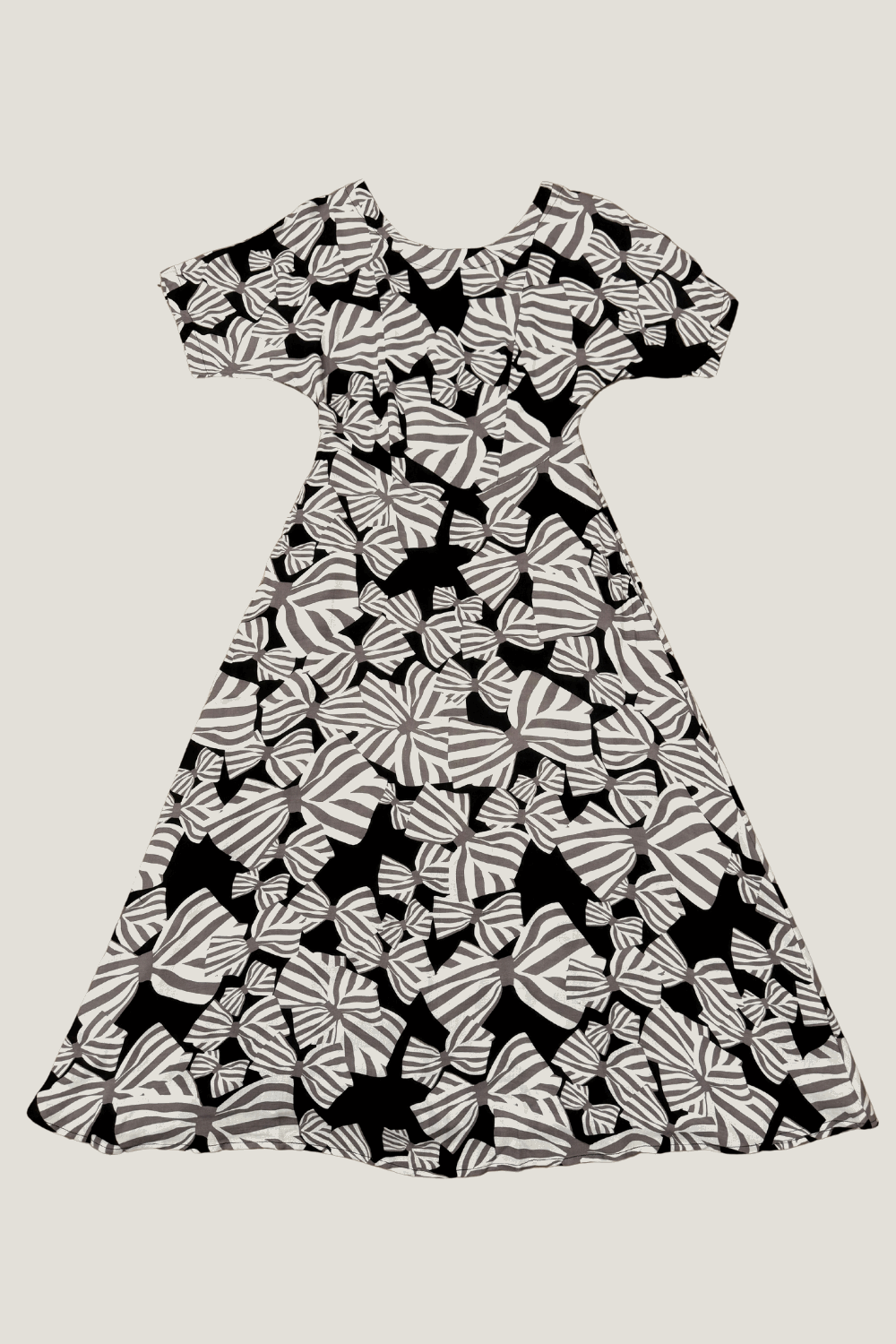 Made from a very special deadstock fabric with printed bow ties. Lightweight and will have you wanting to spin to flair out that skirt! Made from a vintage rayon challis