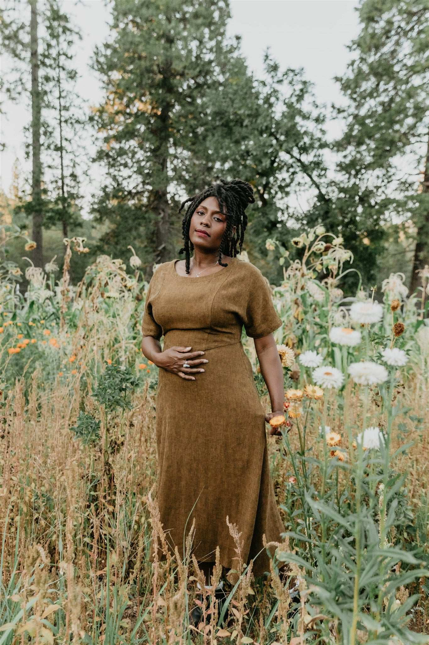 Made from a very special woven cotton deadstock fabric that's thicker than most cottons we use and has more structure & weight. Perfect amber tone of brown, yellow and green mixed with black thread woven in.