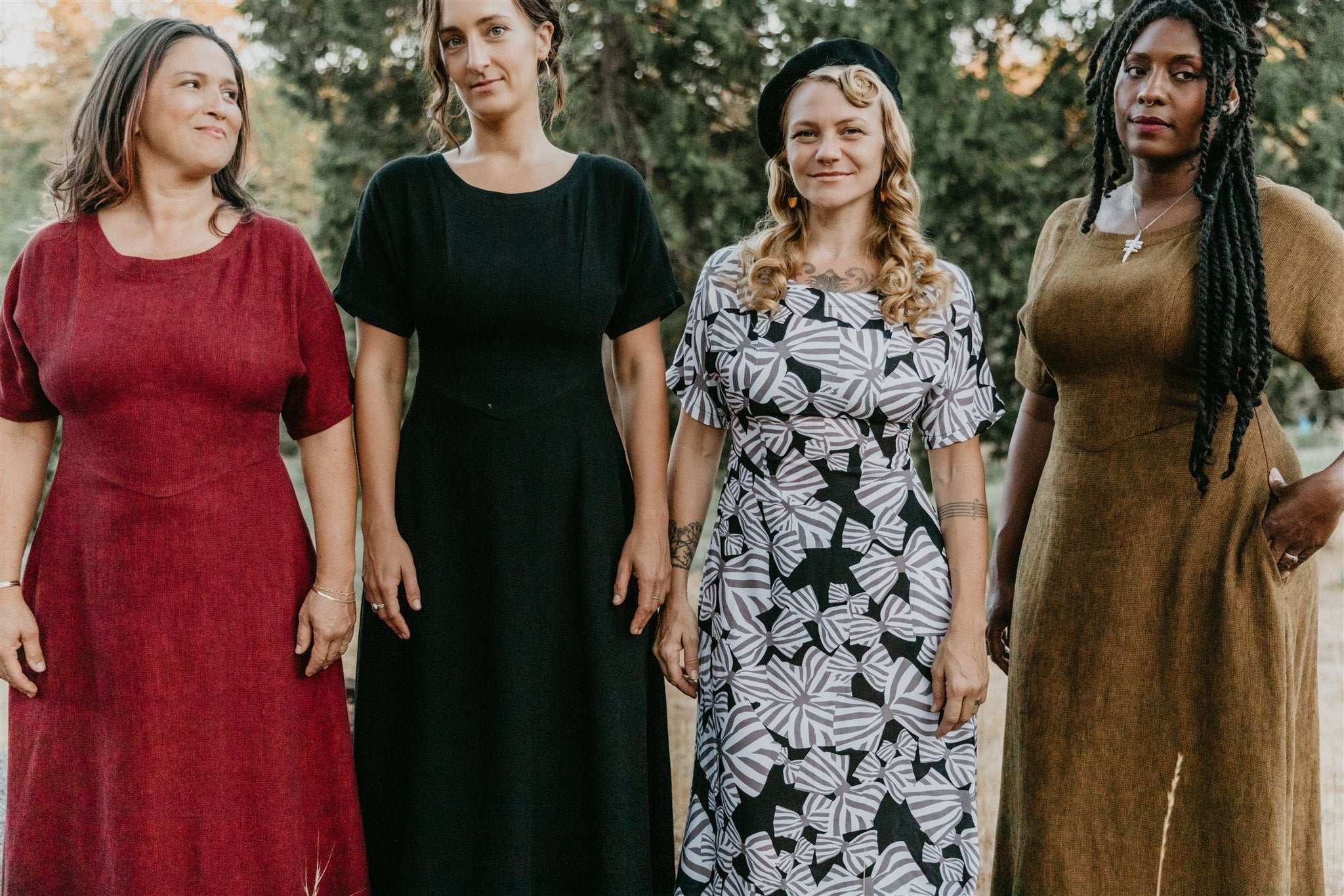 Princess seams at the bust and a little dip at the waist seam for a flattering fit.