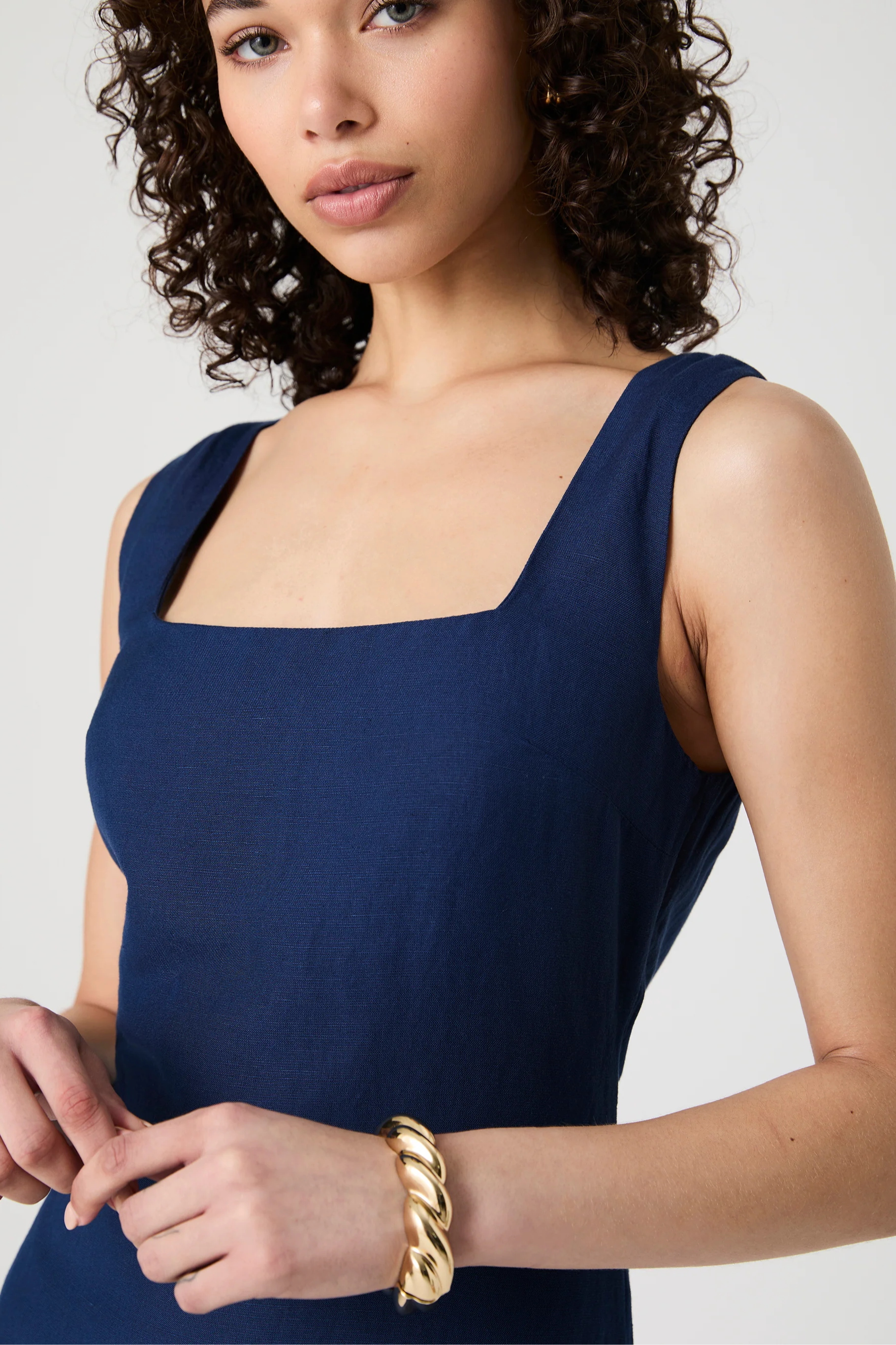 Birdie Linen Square Neck Mini Dress- Midnight Blue
