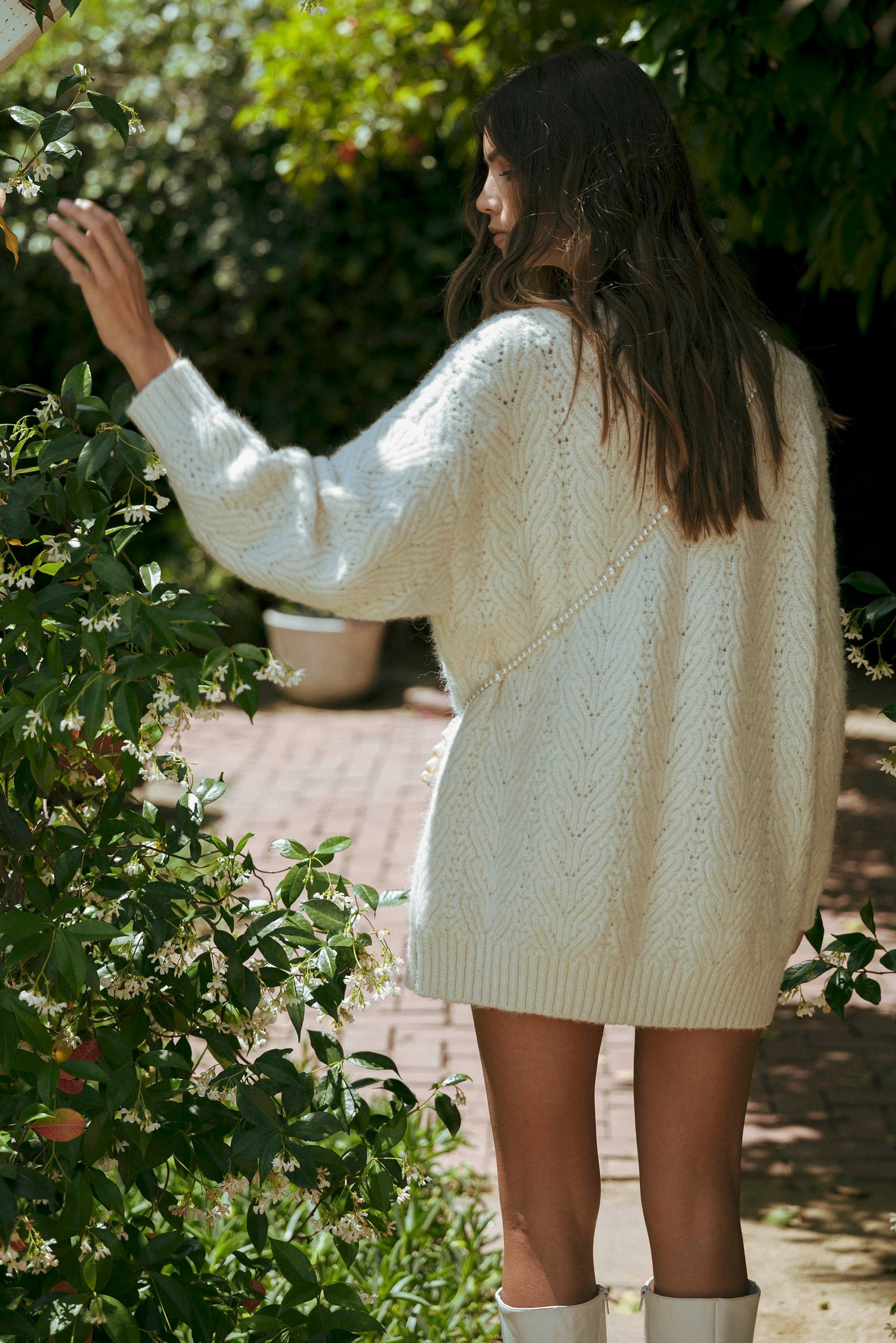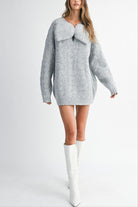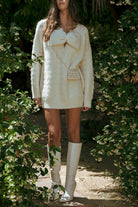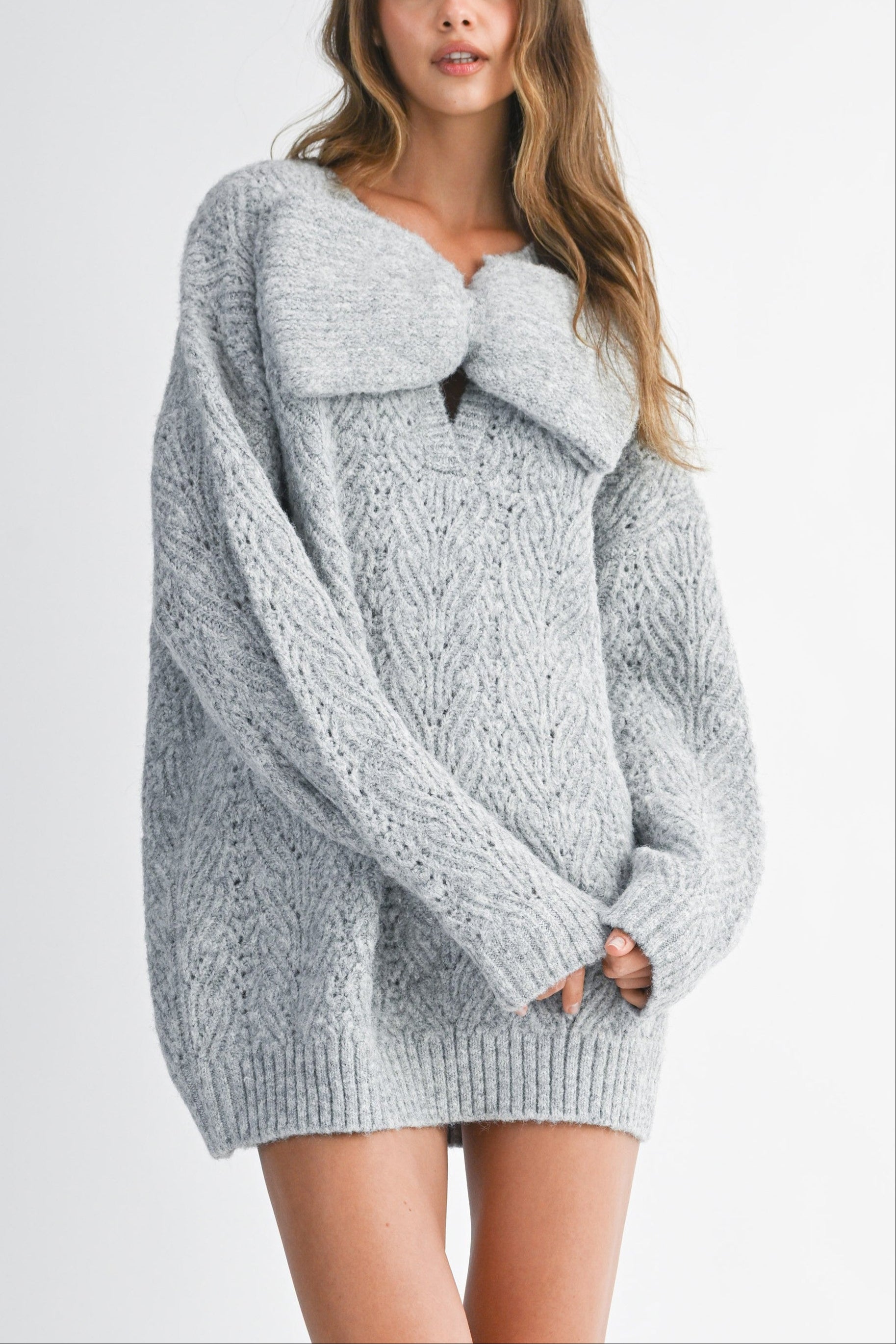 Bow Detail Cable Knit Oversized Sweater MIni Dress