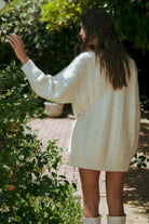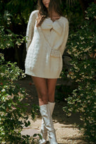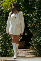 Soft, sweet, and irresistibly cozy — this oversized cable knit sweater dress is designed for both comfort and charm. Featuring a textured cable pattern throughout and a statement bow detail at the neckline, it brings feminine flair to a classic silhouette.