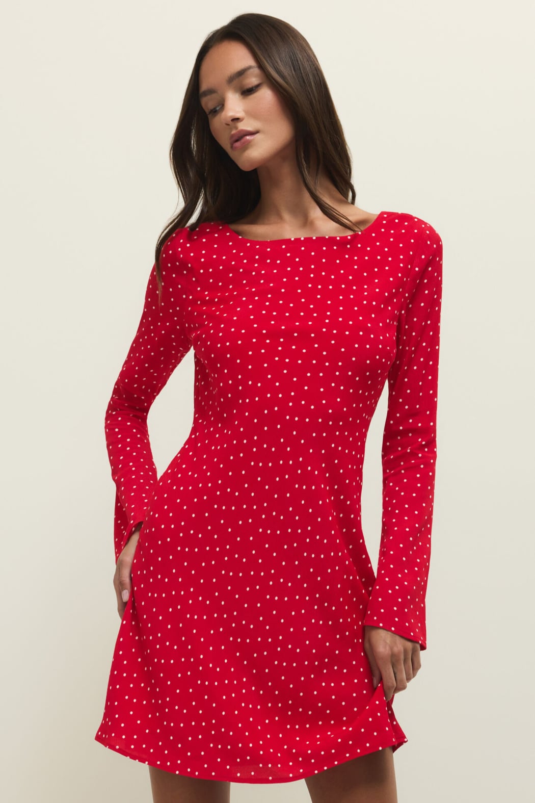 The Campbell Dot Crepe Mini Dress is a polka-dot crepe mini with a flared skirt and long sleeves for an easy, feminine silhouette. Z Supply lends a breezy, casual sensibility with a soft crepe fabrication and a classic boatlike neckline. Wear it for weekend brunches or date nights when you want a playful yet polished look.