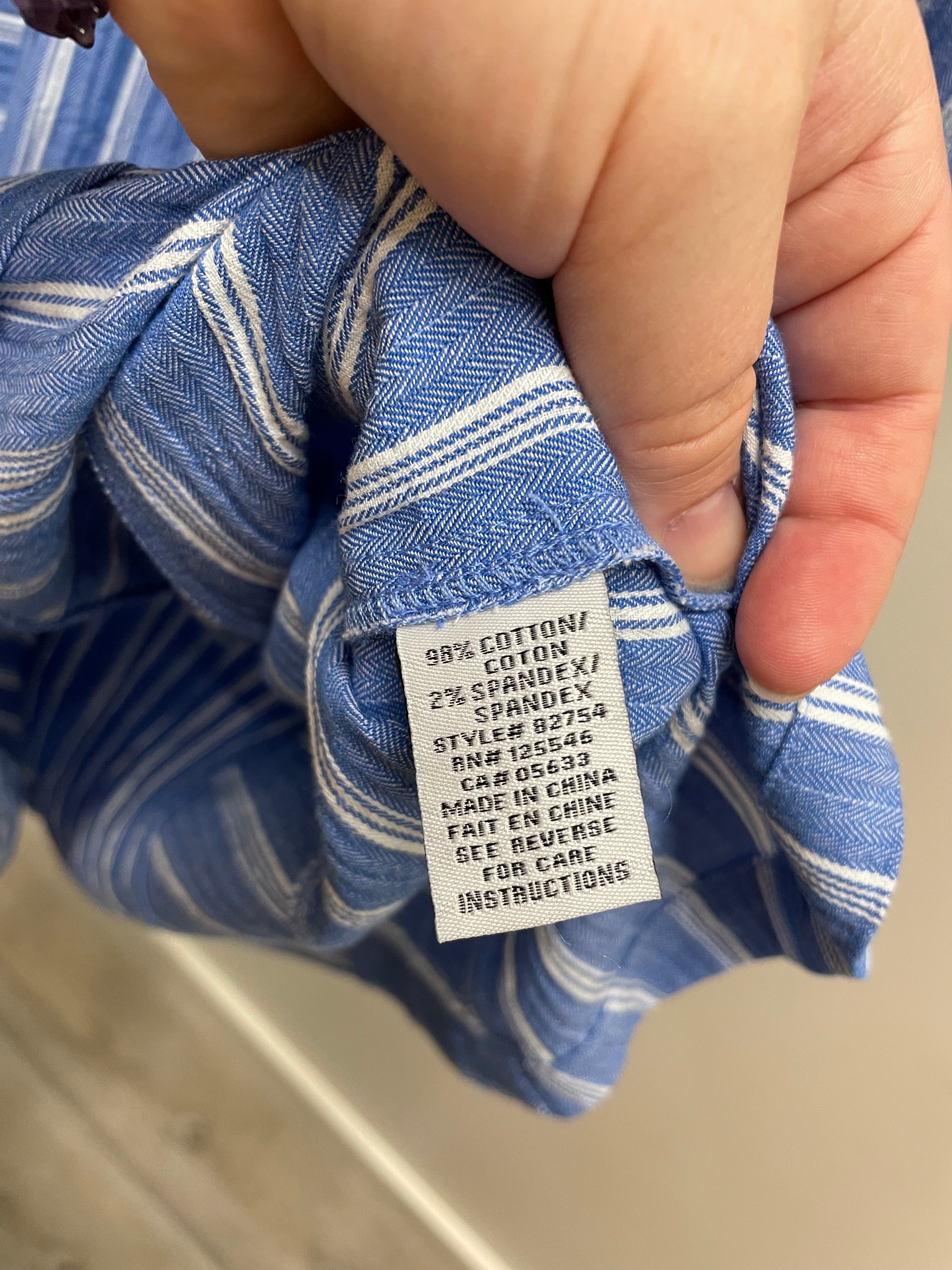 98% Cotton, 2% SpandexMachine wash cold, tumble dry low