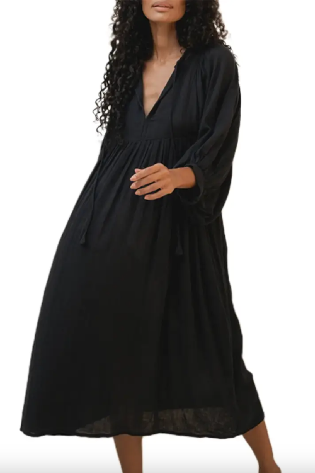 Cotton 3/4 Balloon Sleeve Maxi Dress