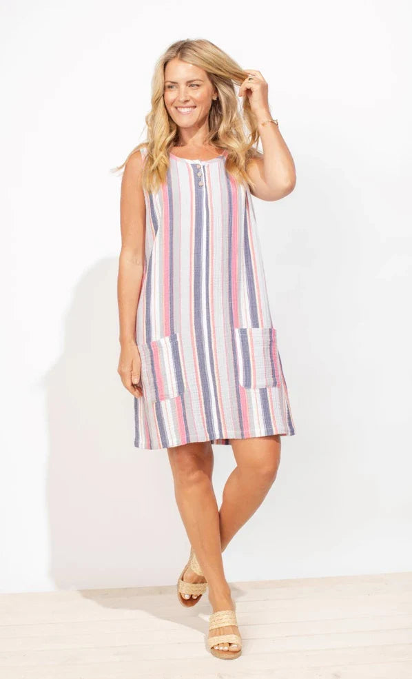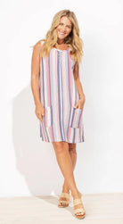 Escape's Cotton Beachfront Dress features button details, two front pockets, and a 36" length, making it perfect for travel. And with 100% cotton construction, it's not only comfortable, but also stylish!