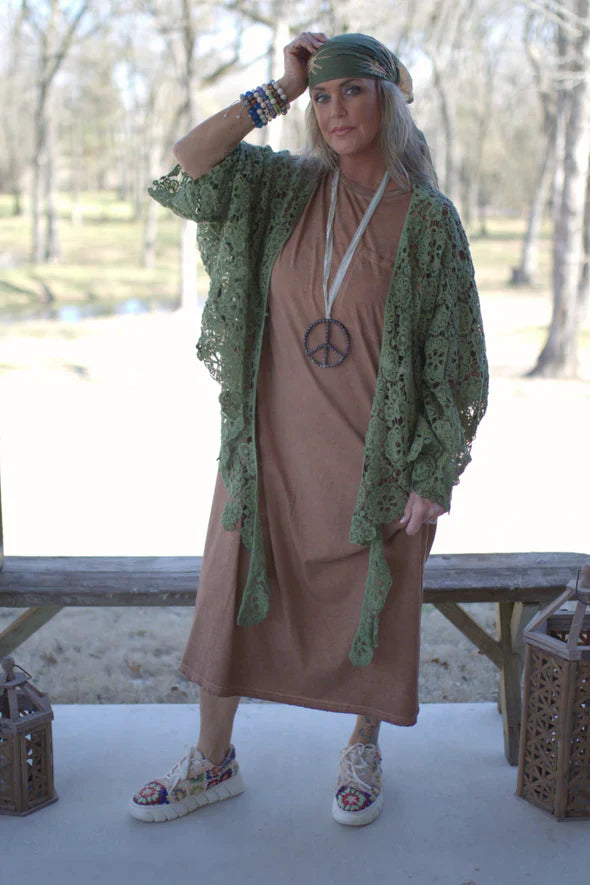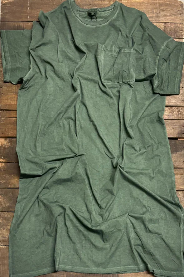 The Cute Comfort Dress by Jaded Gypsy is a playful addition to your wardrobe. Made with 100% cotton and a vintage wash, it offers both comfort and style. Featuring a breast pocket and side slits, this soft jersey dress is perfect for layering. Casual never looked so cute!