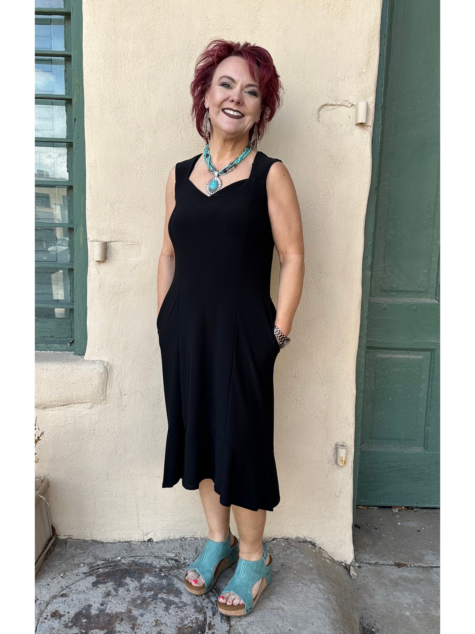 The Desirae Pretty Flounce Dress by Artex Fashions is a modern romantic masterpiece. Expertly tailored to flatter the silhouette, this classic black dress boasts a fitted bodice, sweetheart neckline, and A-line cut, complemented by a playful bottom flounce ruffle and side pockets. Elegant and fashionable, this dress will bring your wardrobe to the highest level of sophistication.