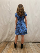 Made from our own 100% rayon challis print featuring the illustrations of Aminah Slor in a bright and bold blue color reminiscent of the ocean and the sky.