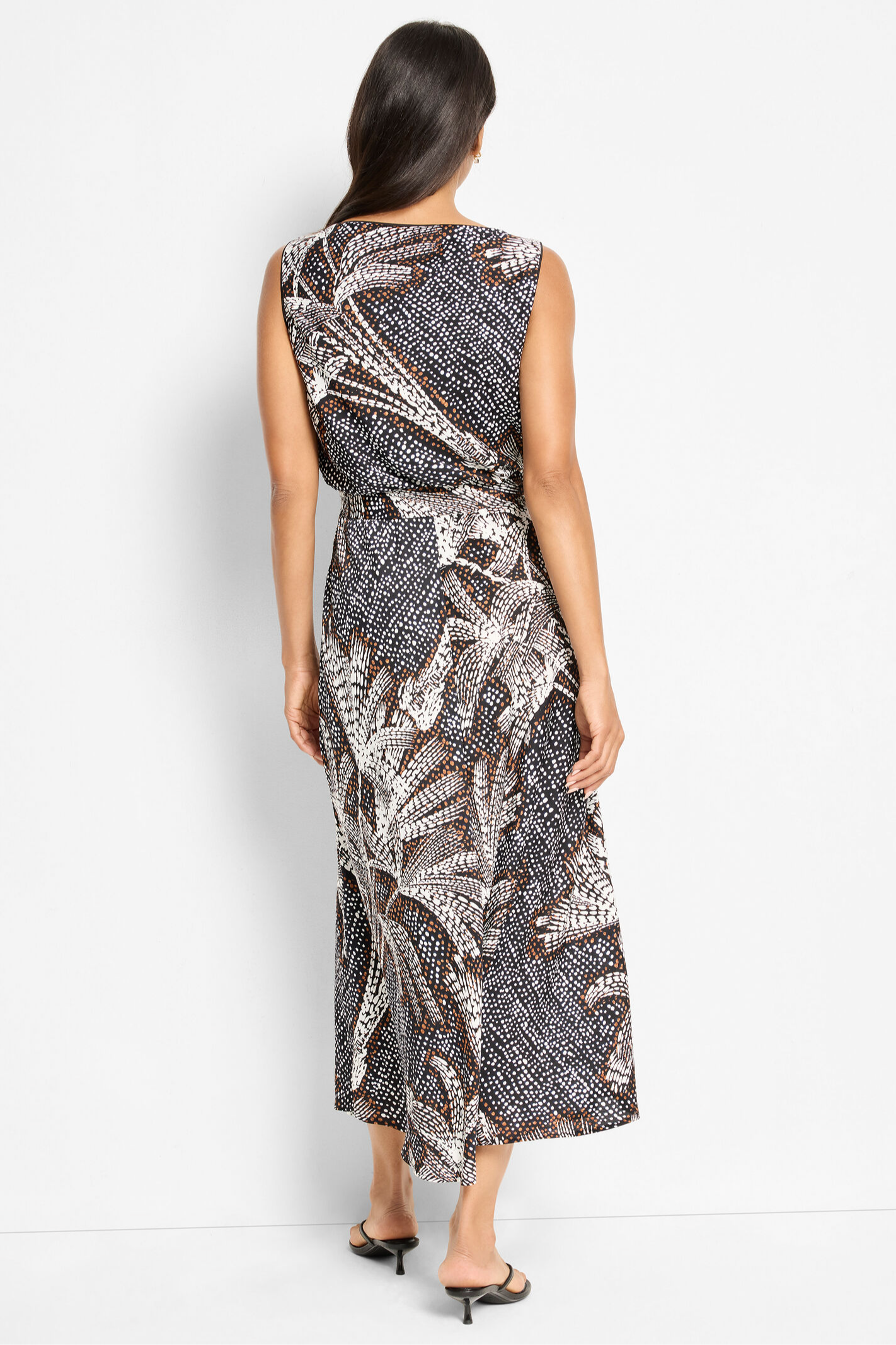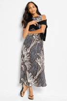 Dotty Palms Boat Neck Bianca Dress- Black/Multi