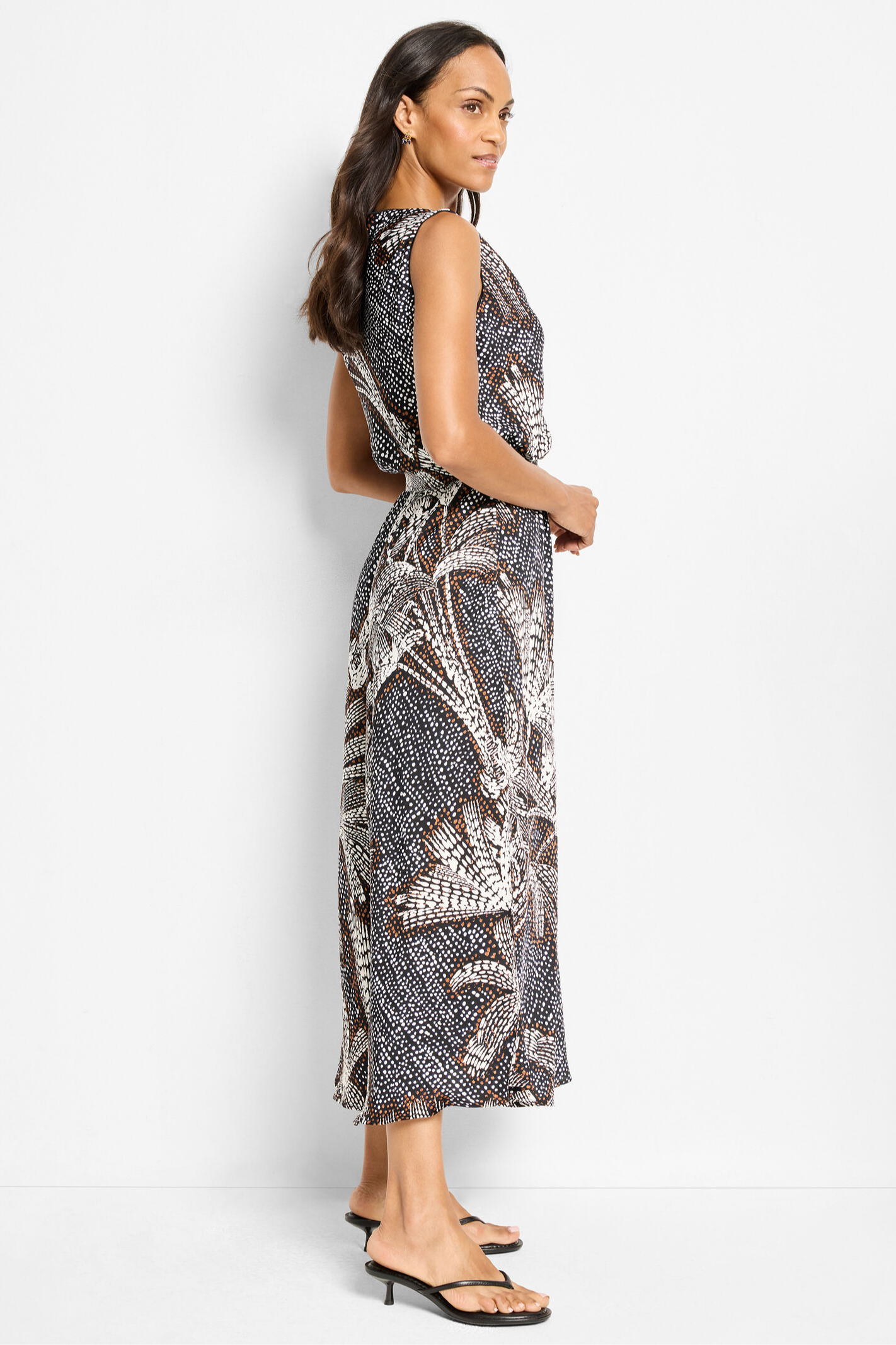 Our fan-favorite maxi silhouette Bianca, now in a boat neck. We think she's never looked better, especially when paired with the Dotty Palms print. Perfect for casual events, work, or as an easy pull-on option when the weather gets warm. Returning are Bianca's lined bodice and a belt tie at the waist to create extra shape.
